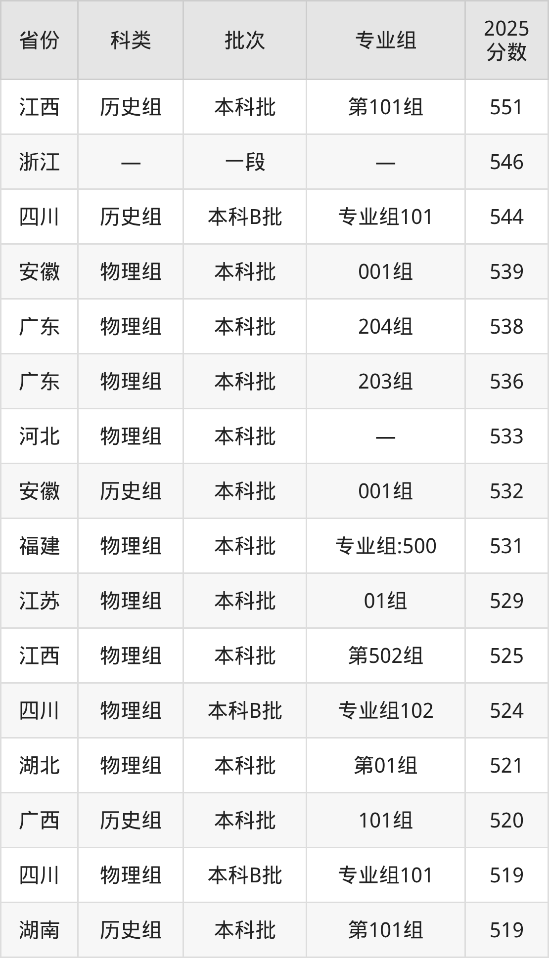 而江西地区历史组考生的分数门槛最高,2025年温州理工学院第101组在江西招生最低分为551分,考生至少要超本科线65分才有可能被录取。