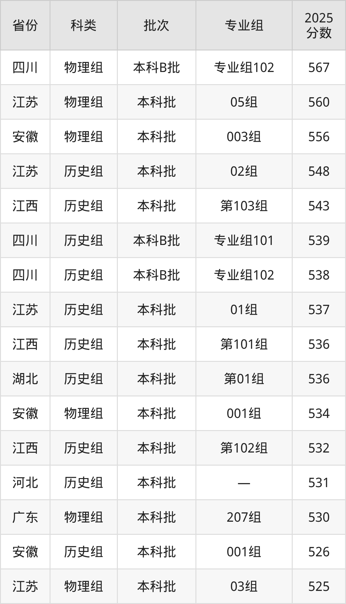 下面是丽水学院2025年在全国各省的录取分数线一览表,供参考: