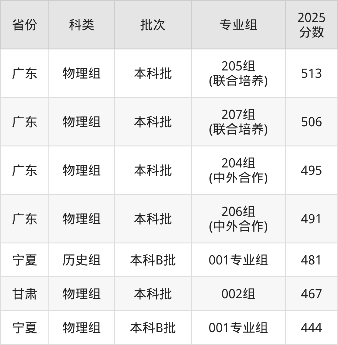 2025年广州航海学院在全国普通批次招生的录取分数范围位于444~545分之间,其中省内分数范围为491分~536分,物理组最低分专业组为“206组(中外合作)”,考生491分即可报考,历史组最低分专业组为“212组(联合培养)”,考生516分即可报考。
