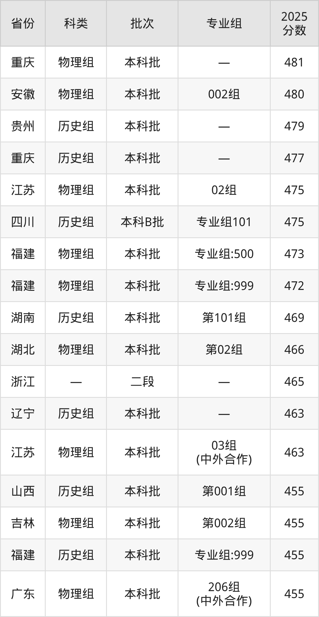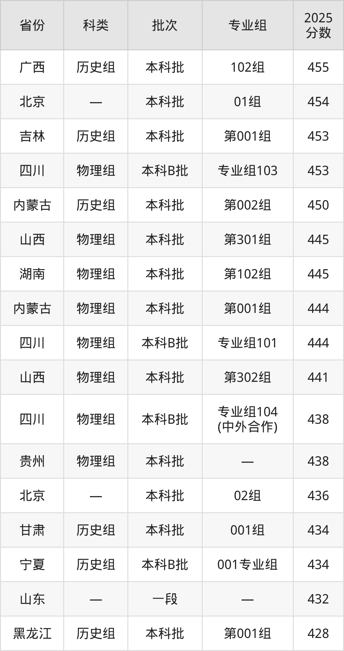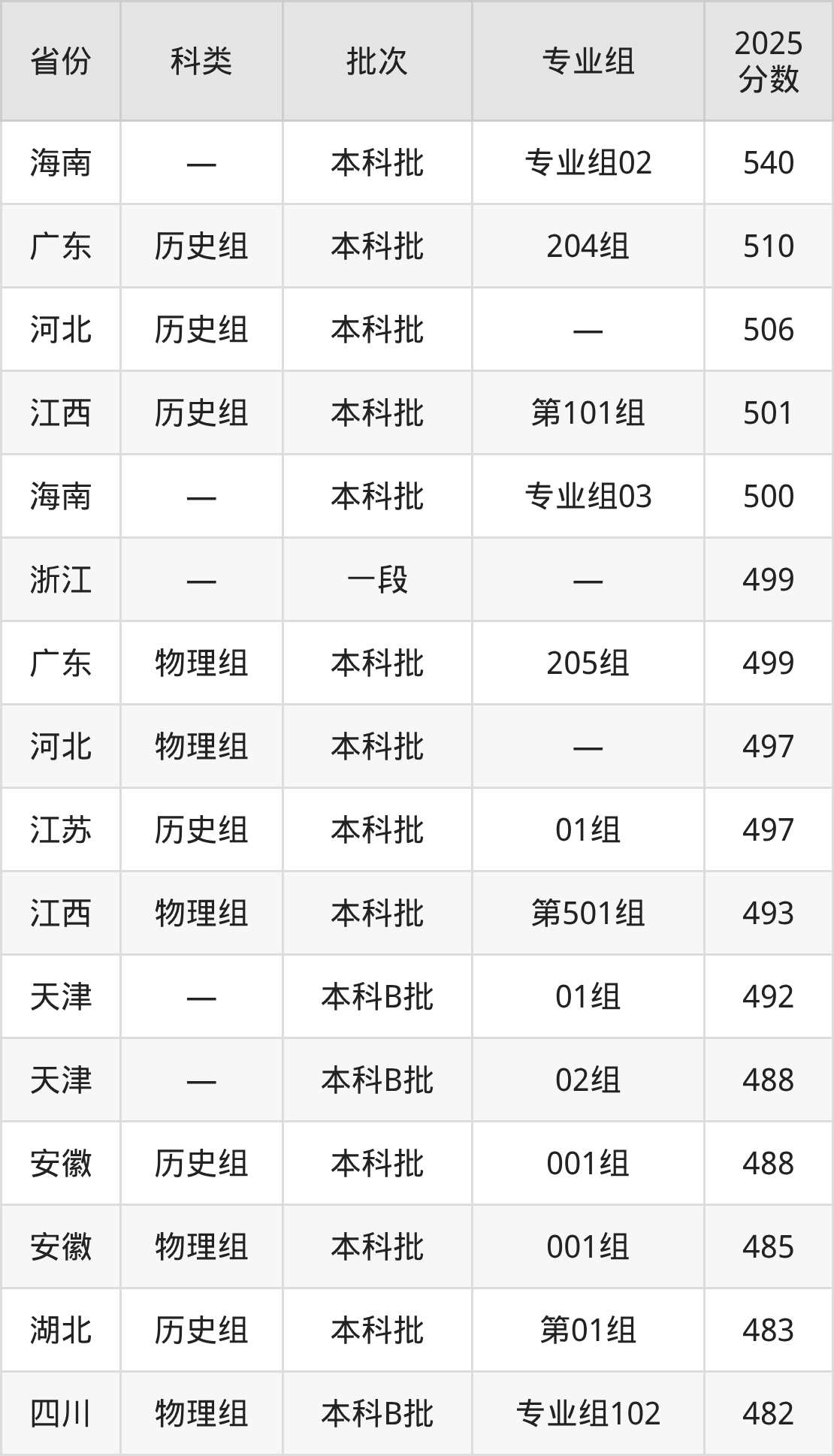 2025年成都东软学院在全国普通批次招生的录取分数范围位于390~540分之间,其中省内分数范围为438分~482分,物理组最低分专业组为“专业组104(中外合作)”,考生438分即可报考,历史组最低分专业组为“专业组101”,考生475分即可报考。