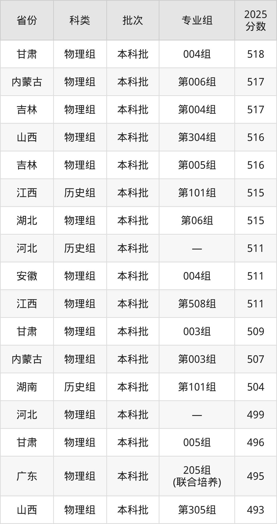 而江苏地区物理组考生的分数门槛最高,2025年桂林医科大学05组在江苏招生最低分为579分,考生至少要超本科线116分才有可能被录取。