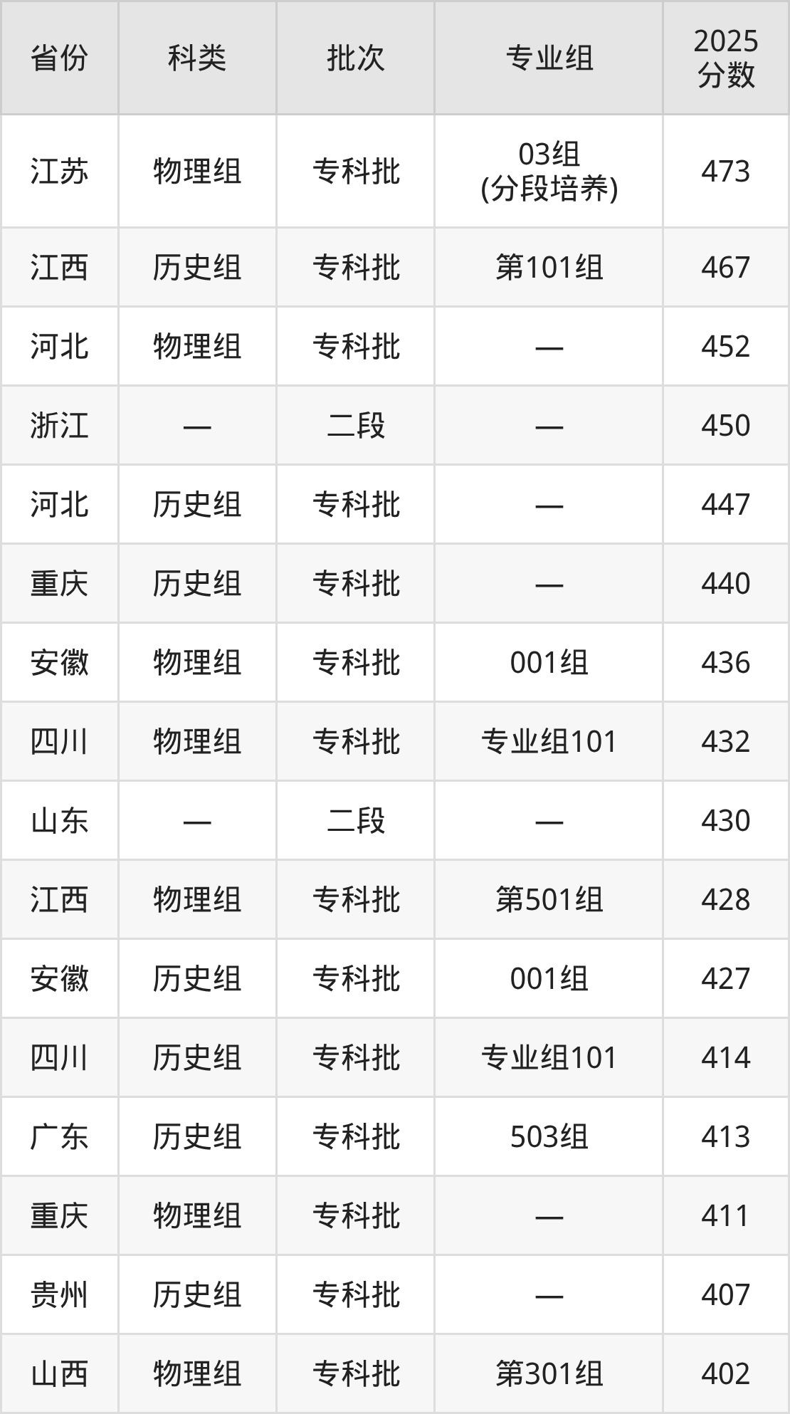 而江西地区历史组考生的分数门槛最高,2025年江苏电子信息职业学院第101组在江西招生最低分为467分,考生至少要超专科线177分才有可能被录取。