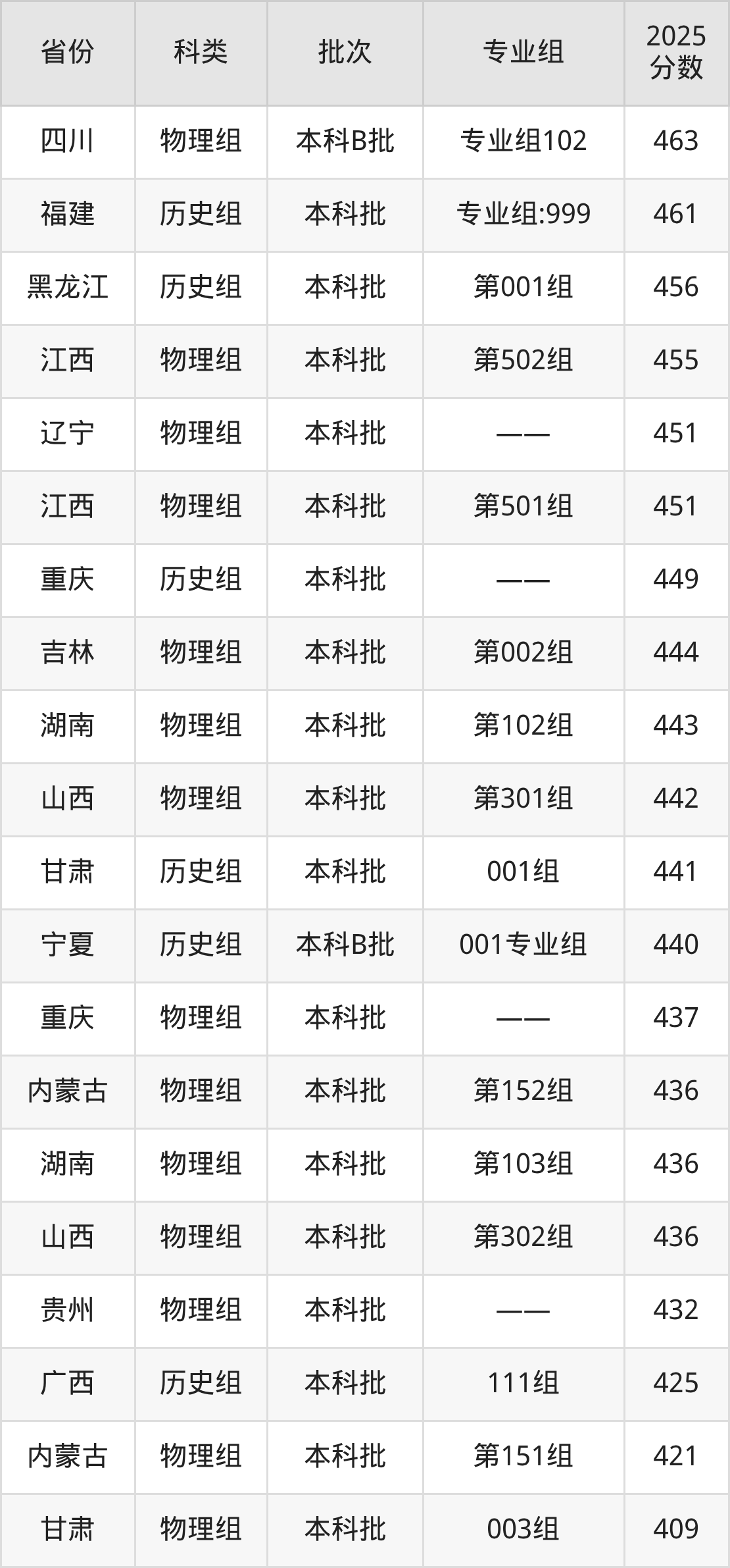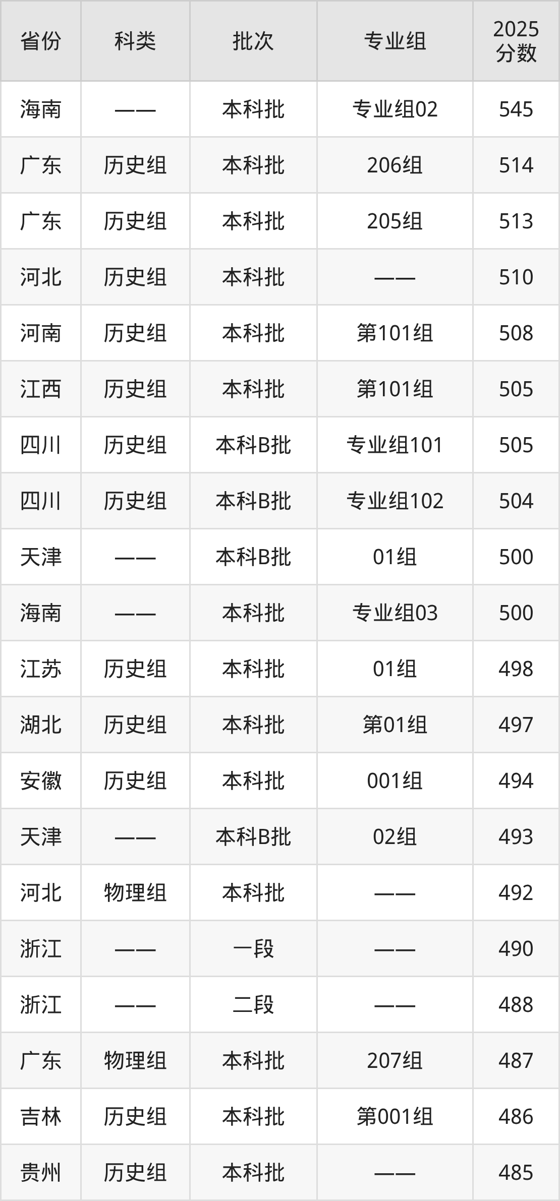下面是重庆对外经贸学院2025年在全国各省的录取分数线一览表,供参考: