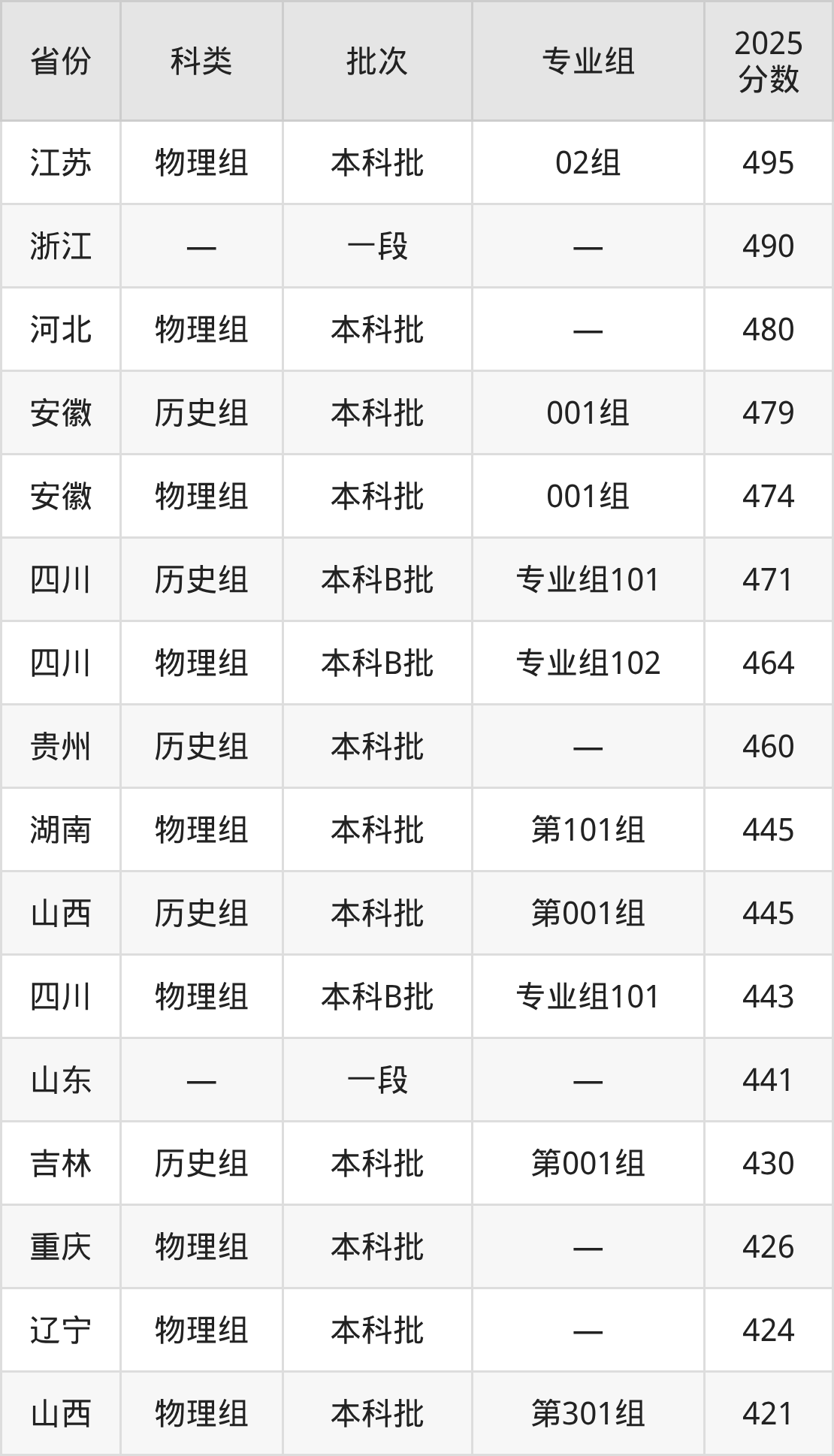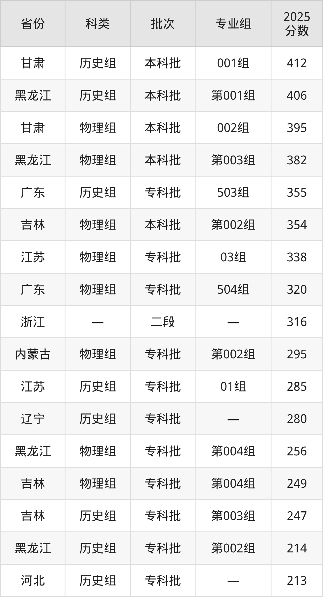 而江苏地区物理组考生的分数门槛最高,2025年山东工程职业技术大学02组在江苏招生最低分为495分,考生至少要超本科线32分才有可能被录取。