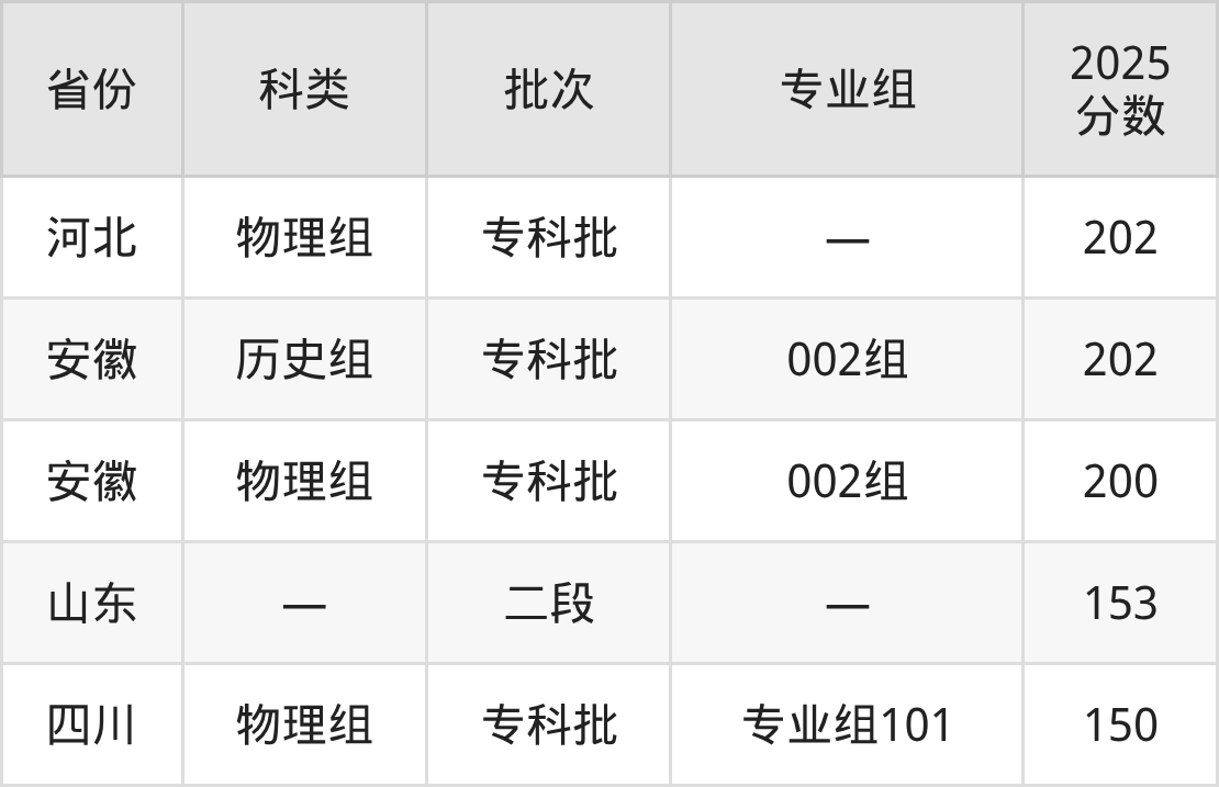 山东工程职业技术大学在省外招生的最低分为150分,其中四川地区物理组考生上山东工程职业技术大学的分数门槛最低,考生成绩达专科线即可报考。其次是安徽物理组考生,上山东工程职业技术大学至少要超专科线0分(200分)。