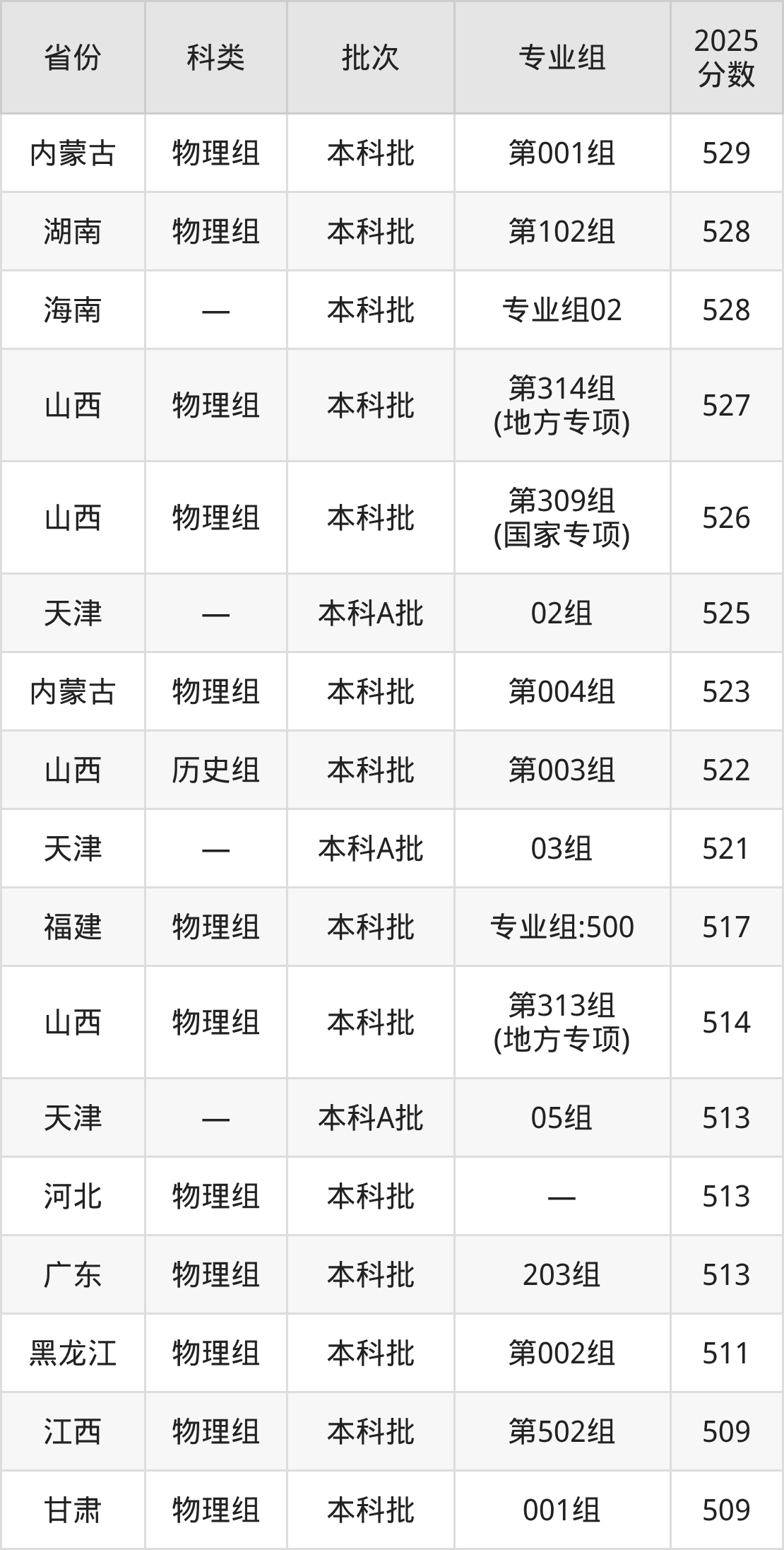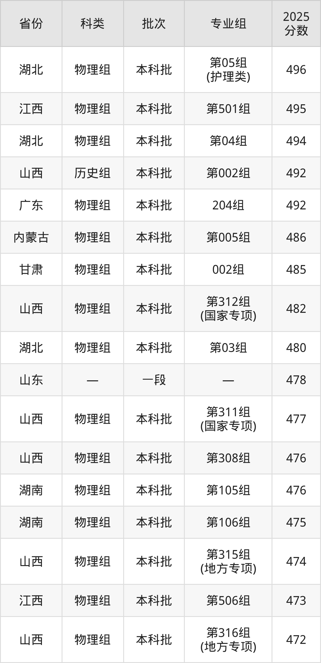 长治医学院2026年录取分数需在高招结束官方数据公布后更新,2026届有意向报考该校的同学,可以在填报志愿时参考长治医学院2025年录取分数线: