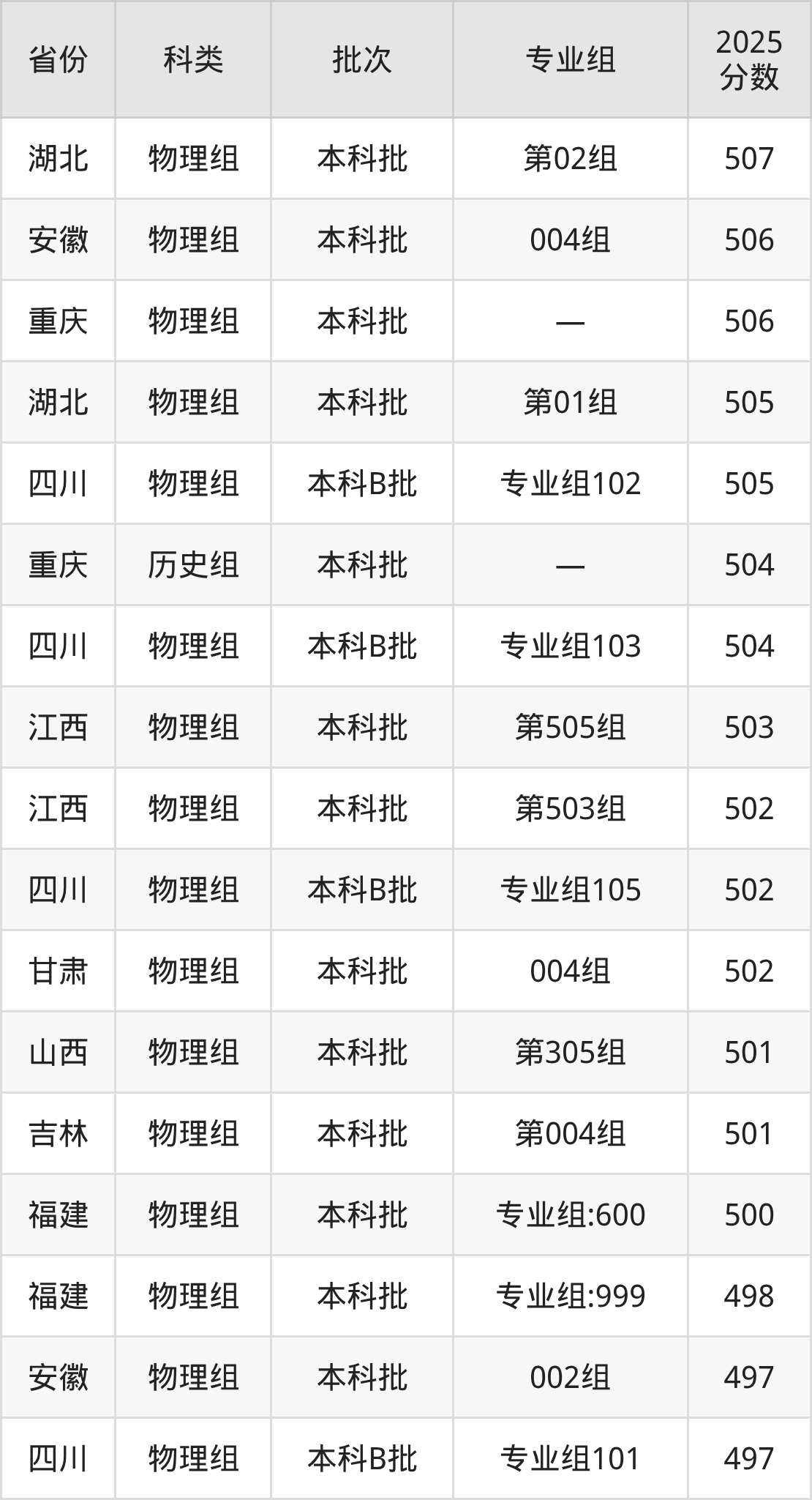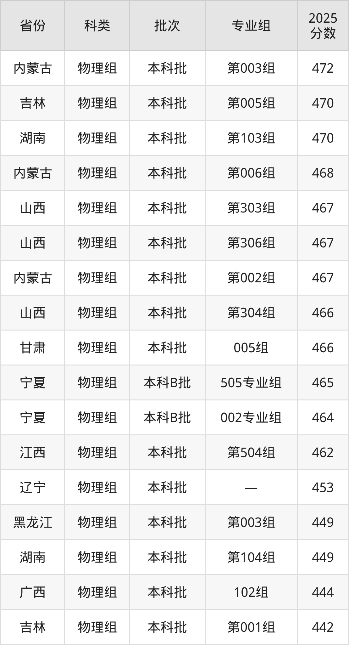 2025年长治医学院在全国普通批次招生的录取分数范围位于406~602分之间,其中省内分数范围为466分~558分,历史组最低分专业组为“第002组”,考生492分即可报考,物理组最低分专业组为“第304组”,考生466分即可报考。