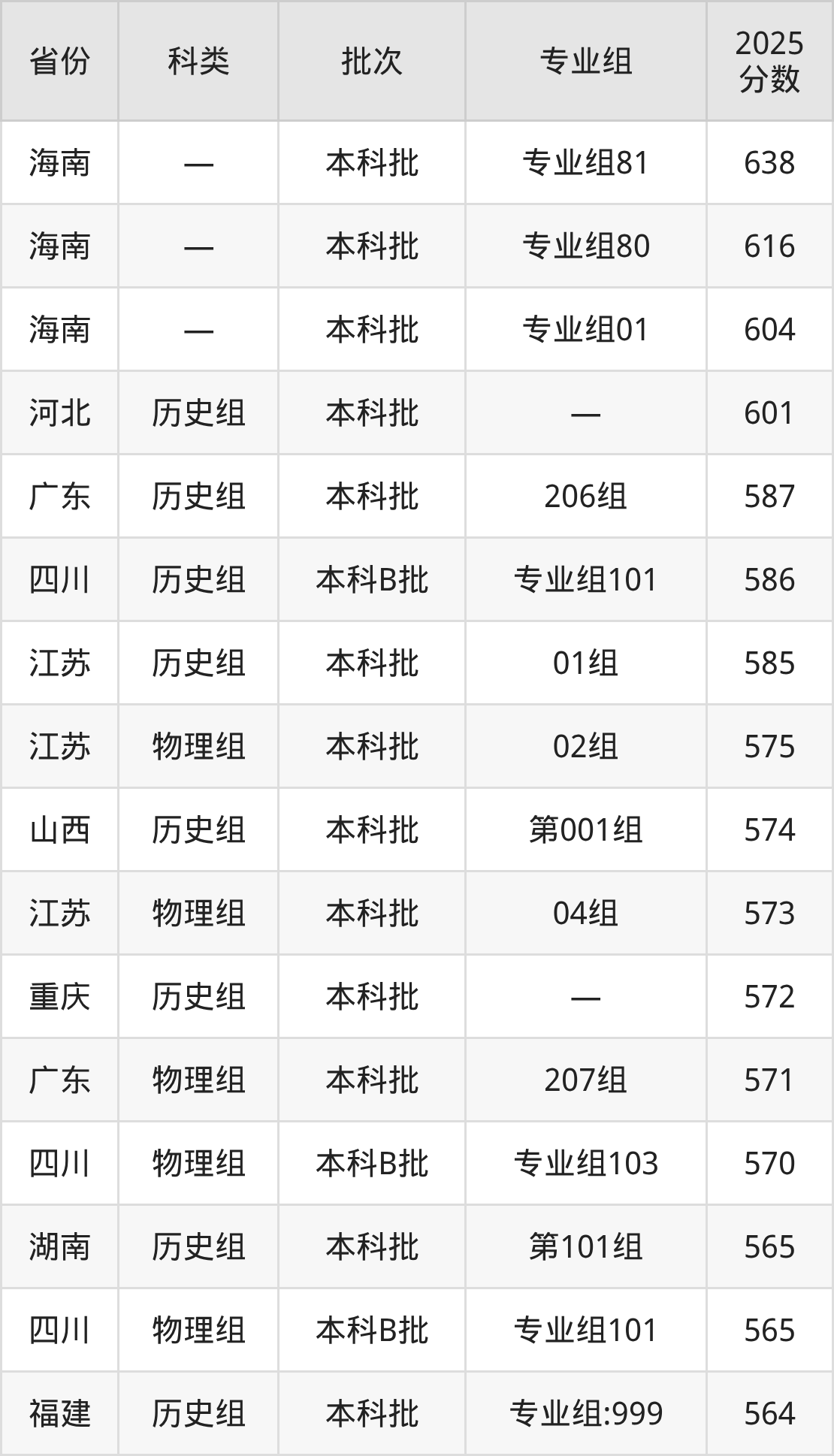 而海南地区考生的分数门槛最高,2025年广西中医药大学专业组81在海南招生最低分为638分,考生至少要超本科线158分才有可能被录取。