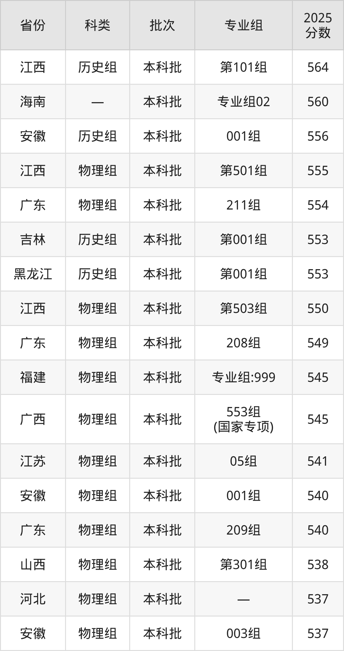 下面是广西中医药大学2025年在全国各省的录取分数线一览表,供参考: