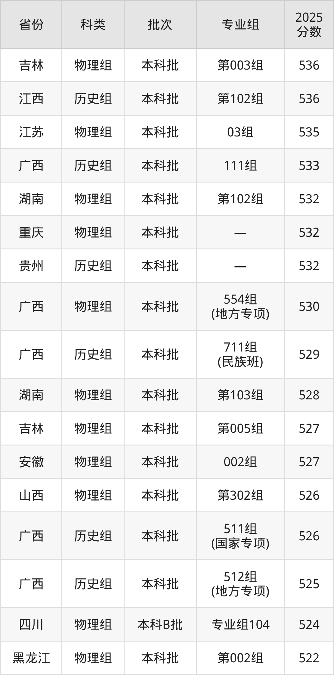 广西中医药大学2026年录取分数需在高招结束官方数据公布后更新,2026届有意向报考该校的同学,可以在填报志愿时参考广西中医药大学2025年录取分数线: