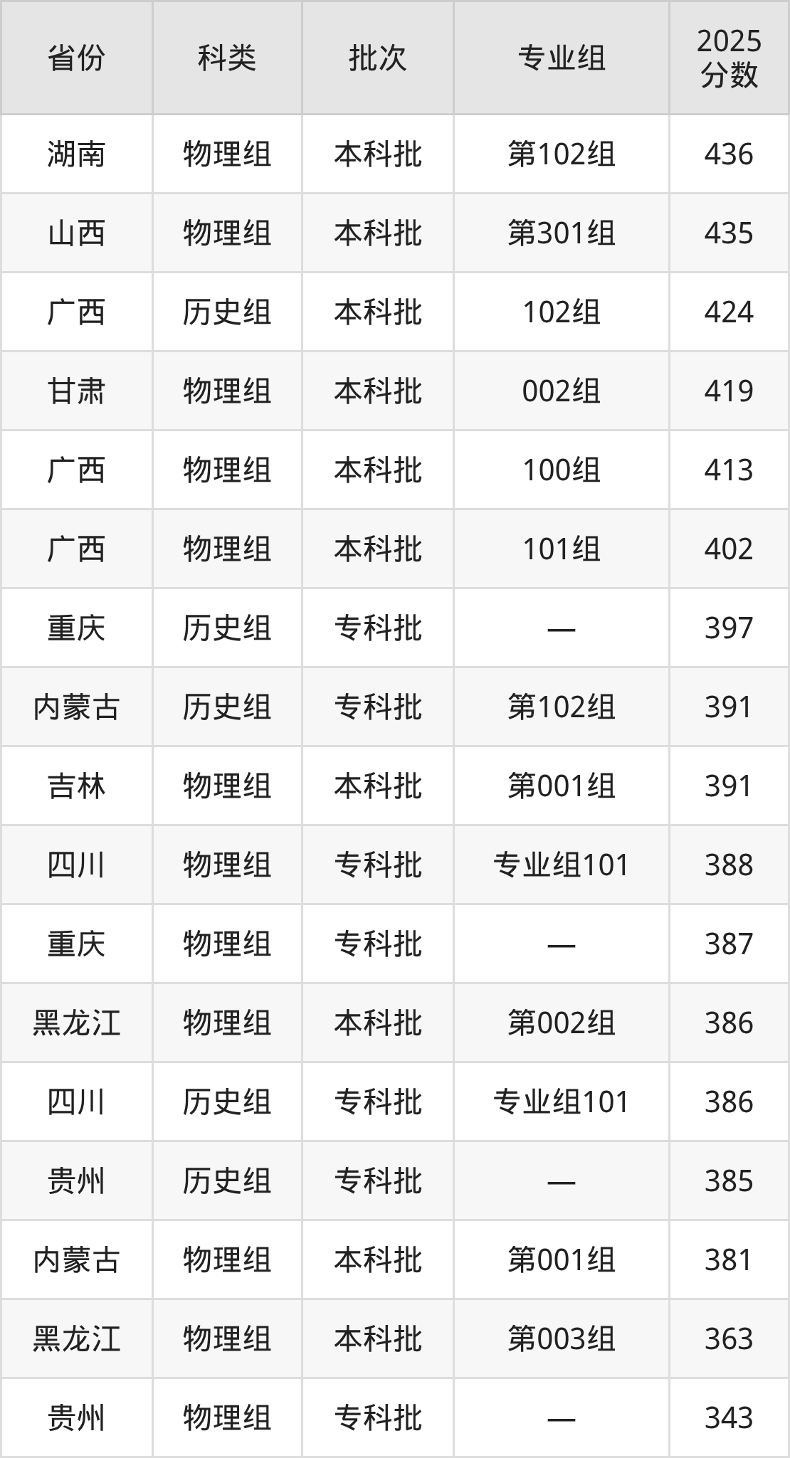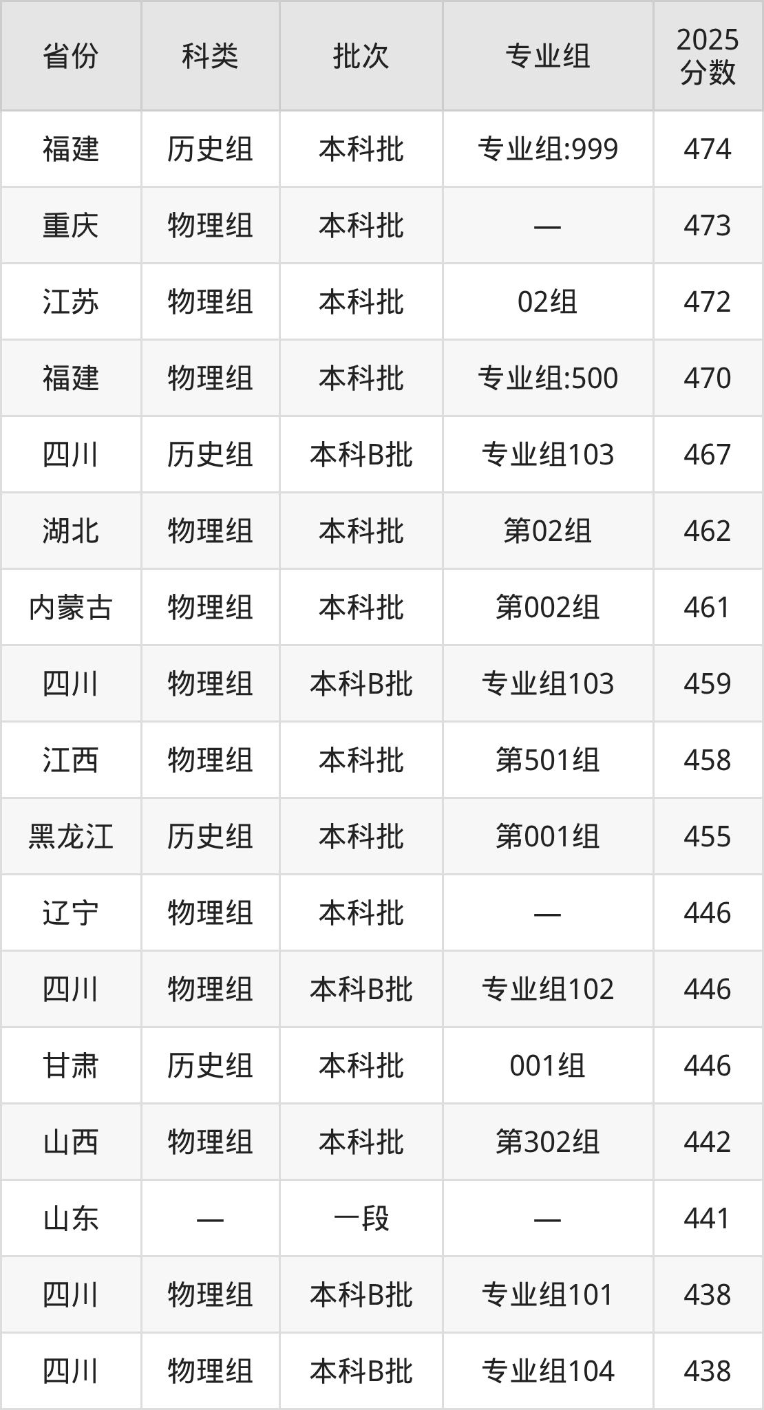 2025年西南交通大学希望学院在全国普通批次招生的录取分数范围位于304~534分之间,其中省内分数范围为386分~485分,物理组最低分专业组为“专业组101”,考生388分即可报考,历史组最低分专业组为“专业组101”,考生386分即可报考。