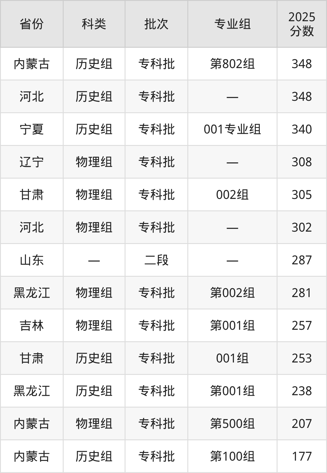 而河北地区历史组考生的分数门槛最高,2025年锡林郭勒职业学院在河北招生最低分为348分,考生至少要超专科线148分才有可能被录取。