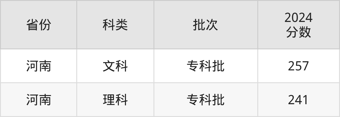 下面是焦作新材料职业学院2024年在全国各省的录取分数线一览表,供参考: