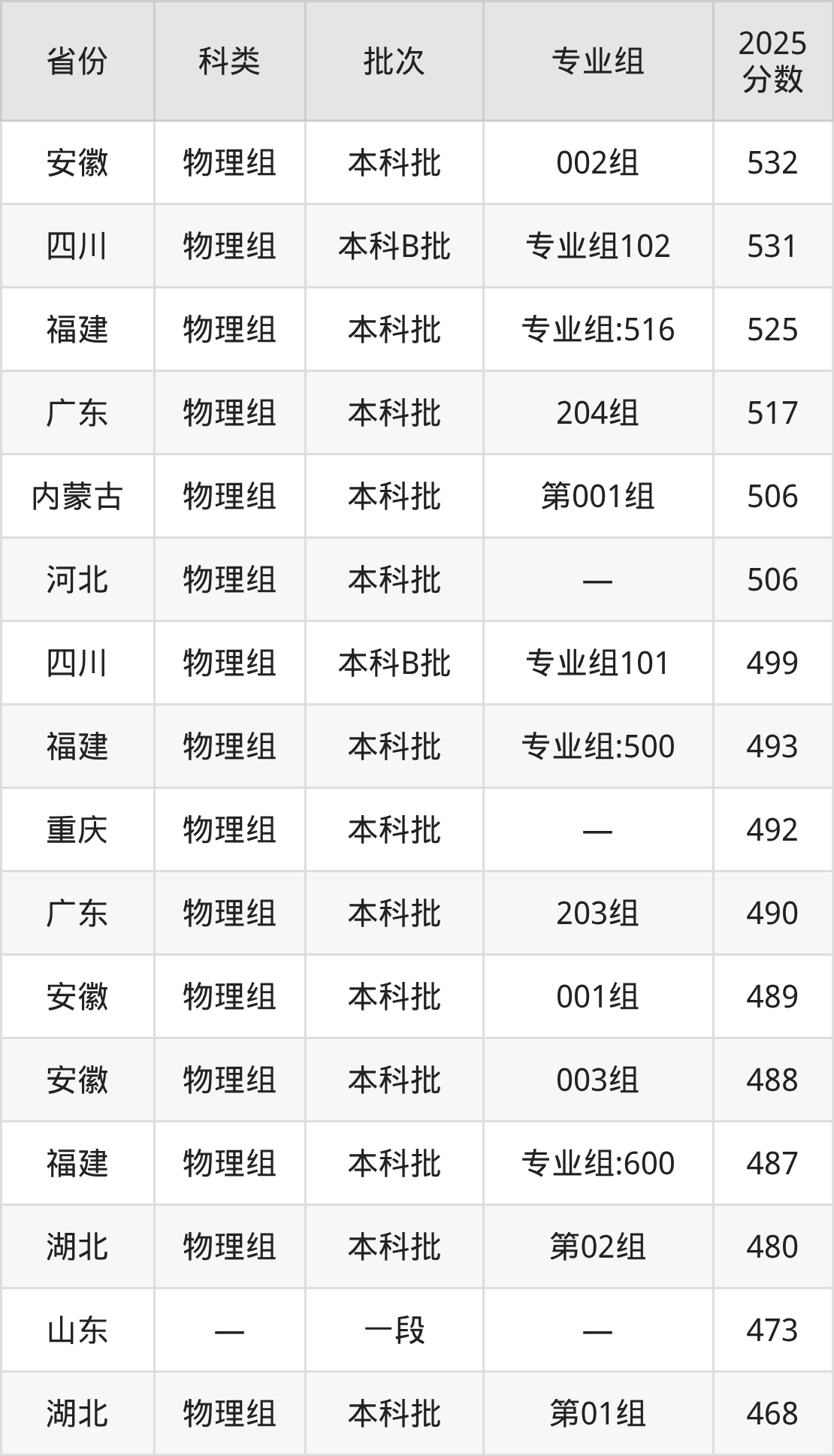 而安徽地区物理组考生的分数门槛最高,2025年豫北医学院002组在安徽招生最低分为532分,考生至少要超本科线71分才有可能被录取。