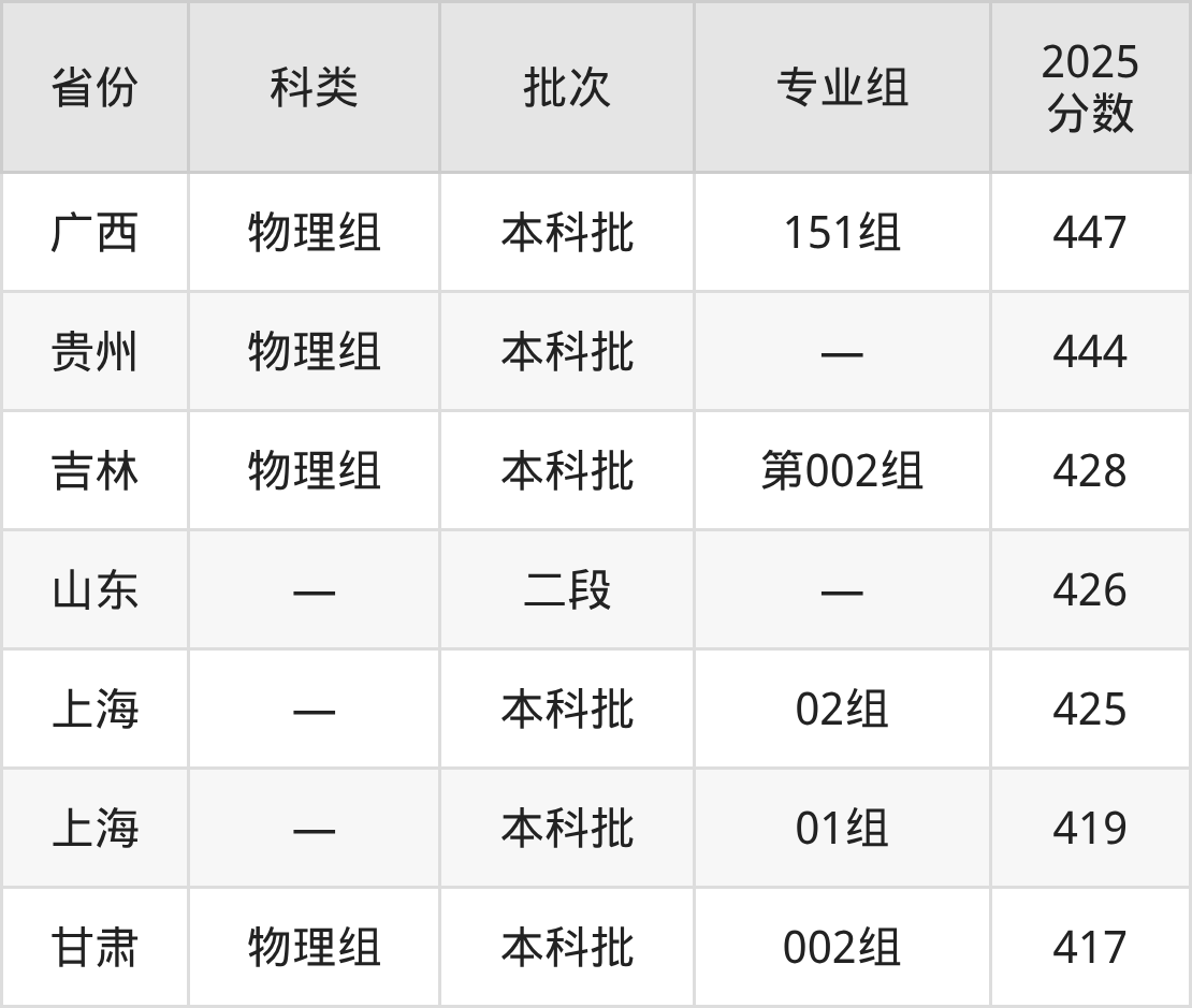 济宁学院在省外招生的最低分为417分,其中甘肃地区物理组考生上济宁学院的分数门槛最低,考生成绩超本科线43分(417分)可上。其次是上海考生,上济宁学院至少要超本科线17分(419分)。