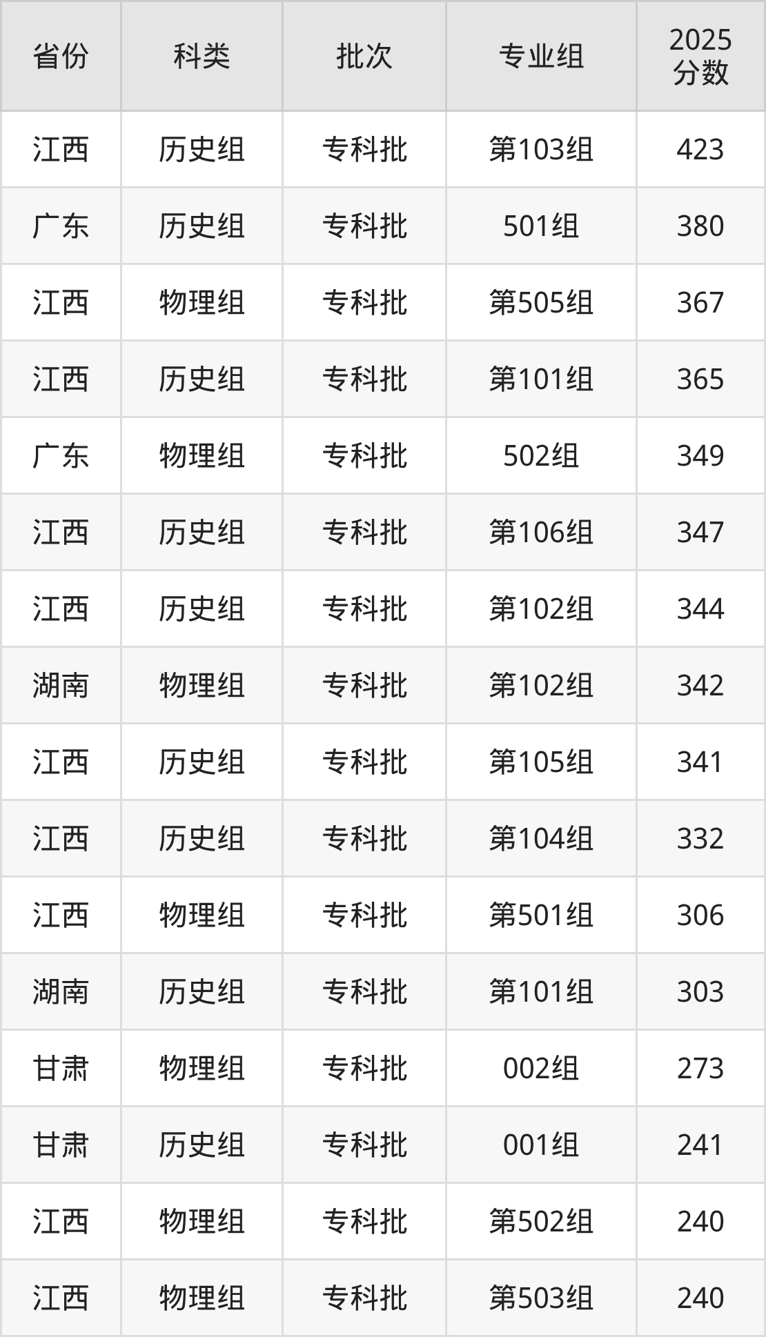 广州现代信息工程职业技术学院在省外招生的最低分为240分,其中江西地区物理组考生上广州现代信息工程职业技术学院的分数门槛最低,考生成绩达专科线即可报考。