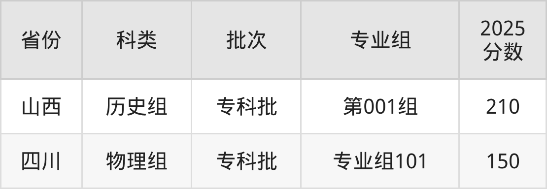 黑龙江农业经济职业学院在省外招生的最低分为150分,其中四川地区物理组考生上黑龙江农业经济职业学院的分数门槛最低,考生成绩达专科线即可报考。其次是山西历史组考生,上黑龙江农业经济职业学院至少要超专科线110分(210分)。
