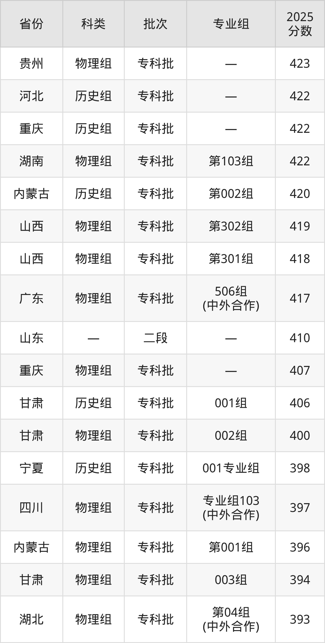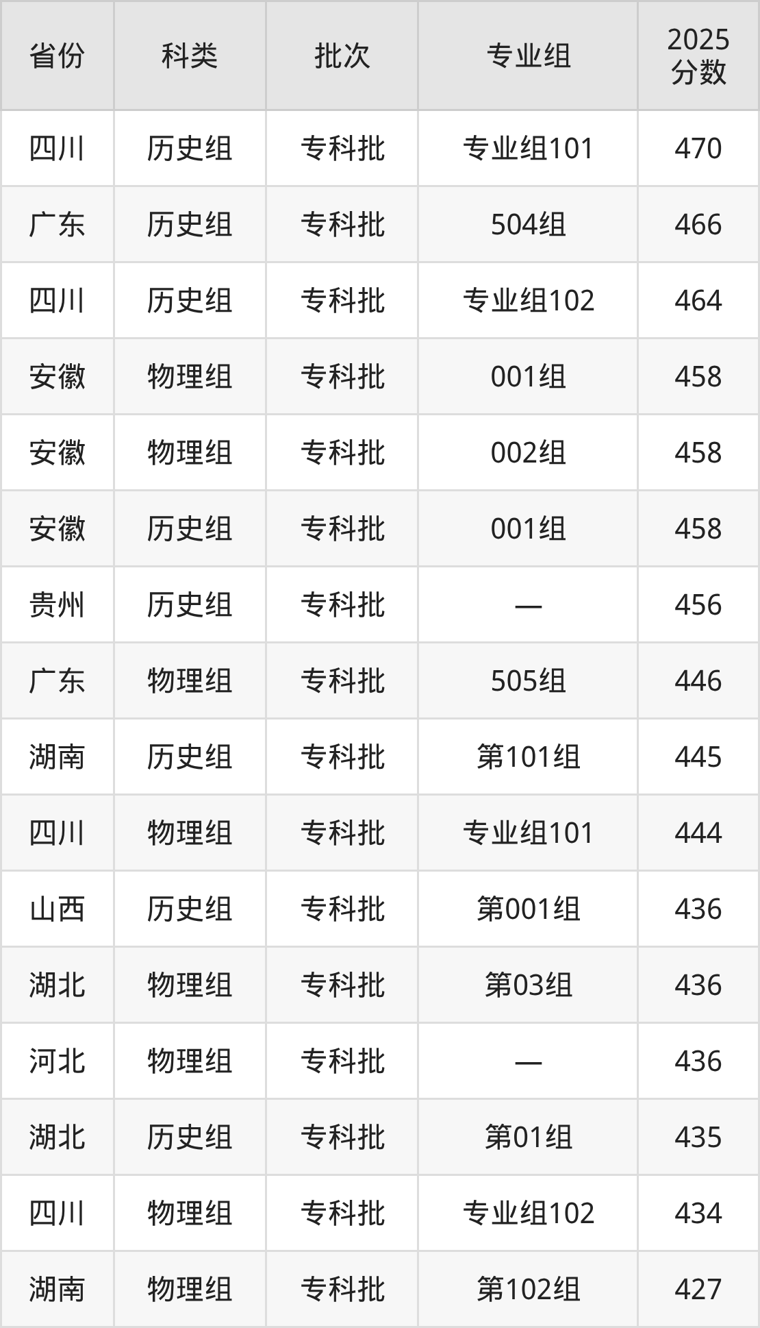 而四川地区历史组考生的分数门槛最高,2025年重庆工业职业技术大学专业组101在四川招生最低分为470分,考生至少要超专科线320分才有可能被录取。