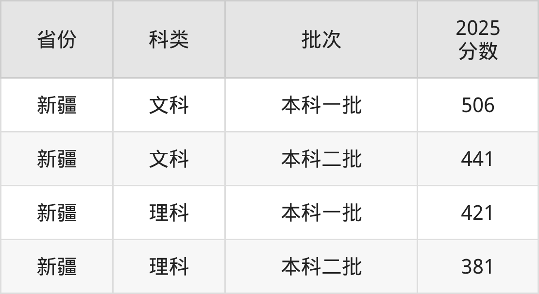 下面是新疆医科大学2025年在全国各省的录取分数线一览表,供参考: