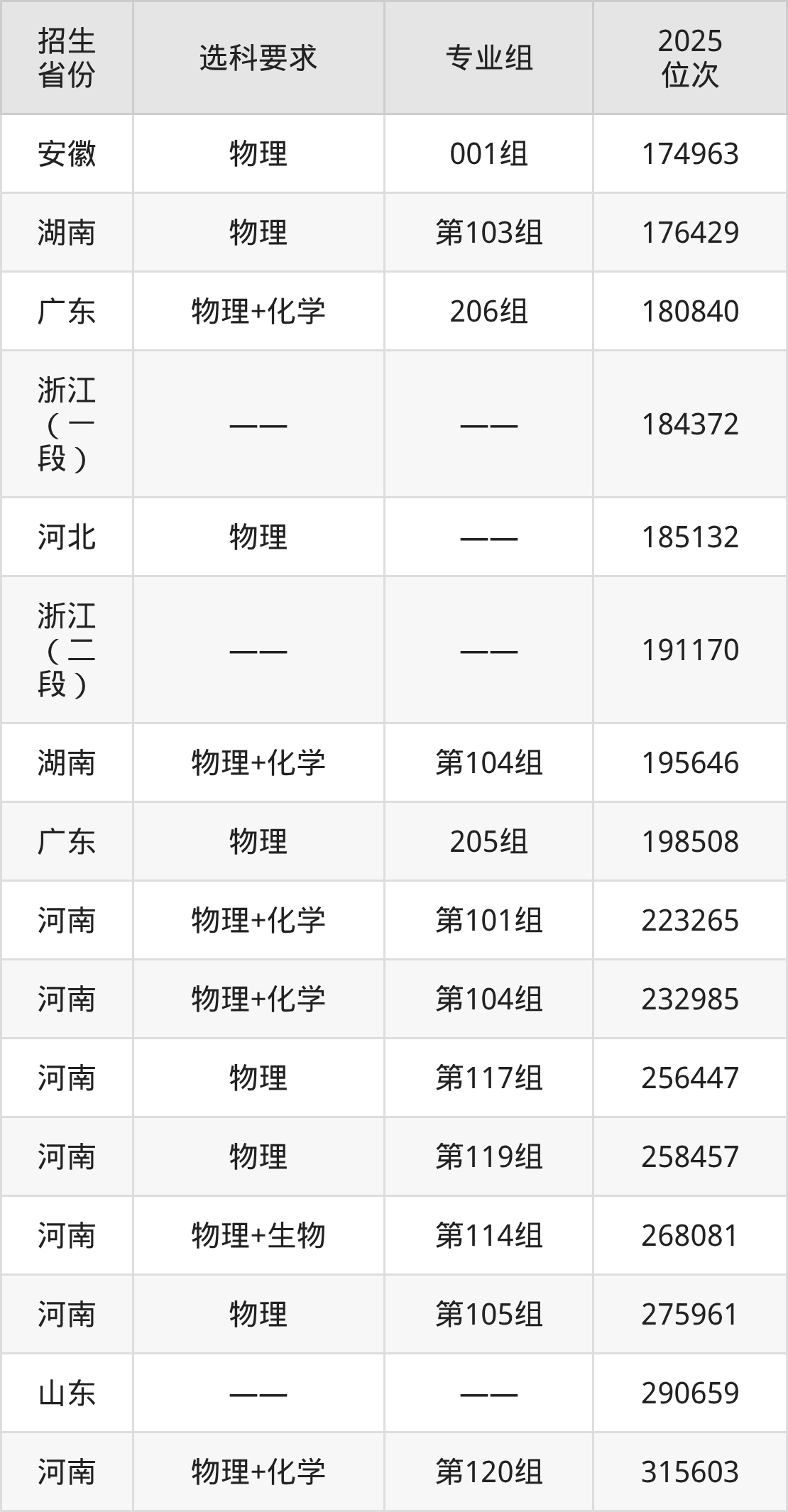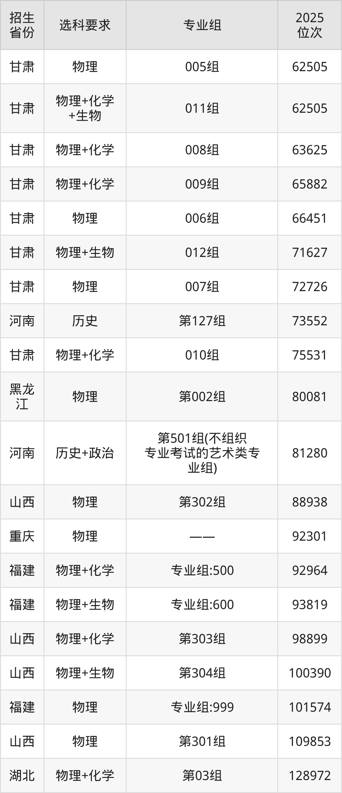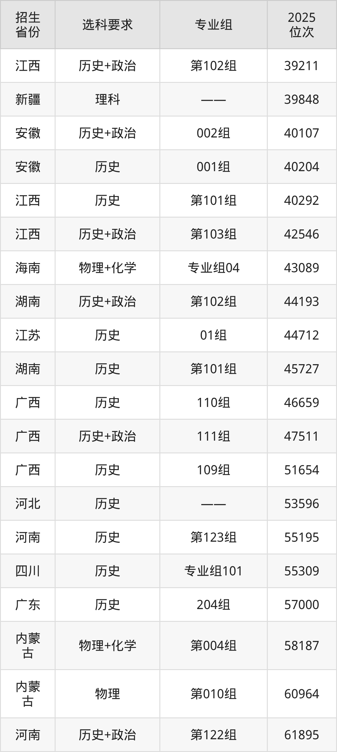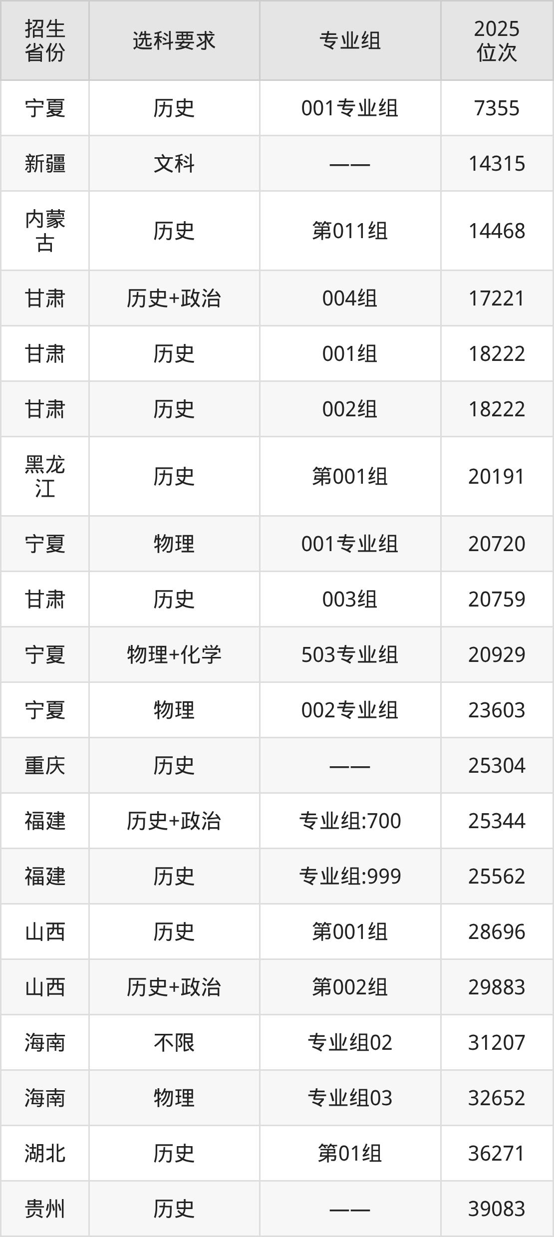 西京学院2025年在全国各省的位次差异较大,最高位次是7355位(宁夏历史类)、最低位次是315603位(河南物理类)。各省具体位次请看下图: