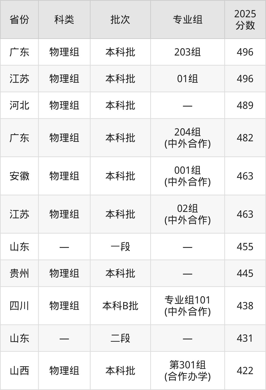 而广东地区物理组考生的分数门槛最高,2025年齐鲁师范学院203组在广东招生最低分为496分,考生至少要超本科线60分才有可能被录取。