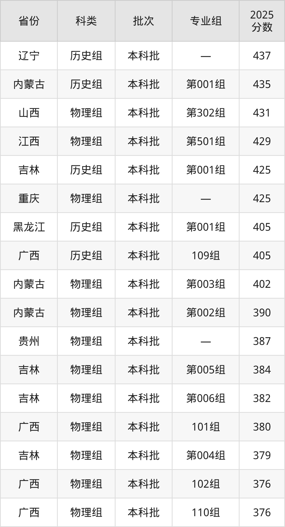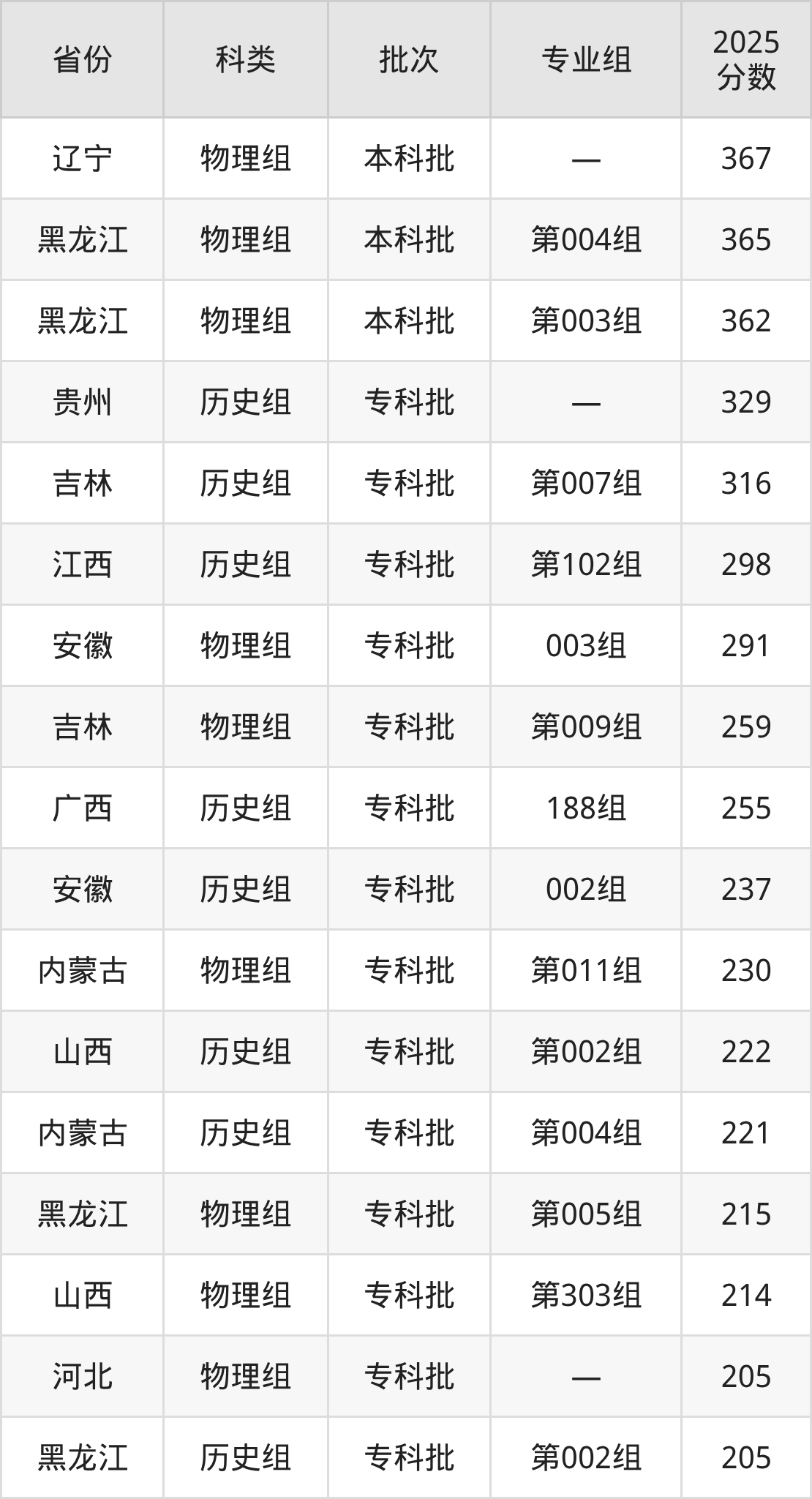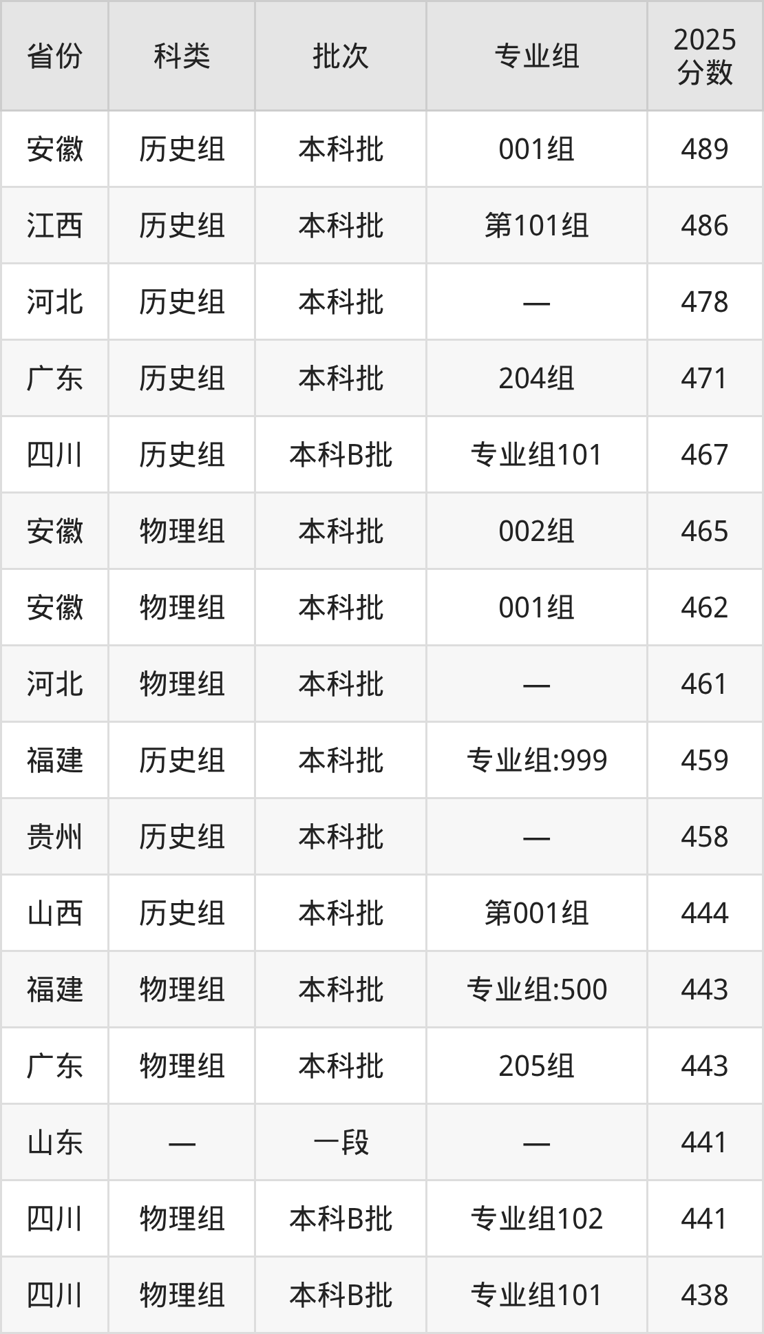 而安徽地区历史组考生的分数门槛最高,2025年辽宁传媒学院001组在安徽招生最低分为489分,考生至少要超本科线12分才有可能被录取。