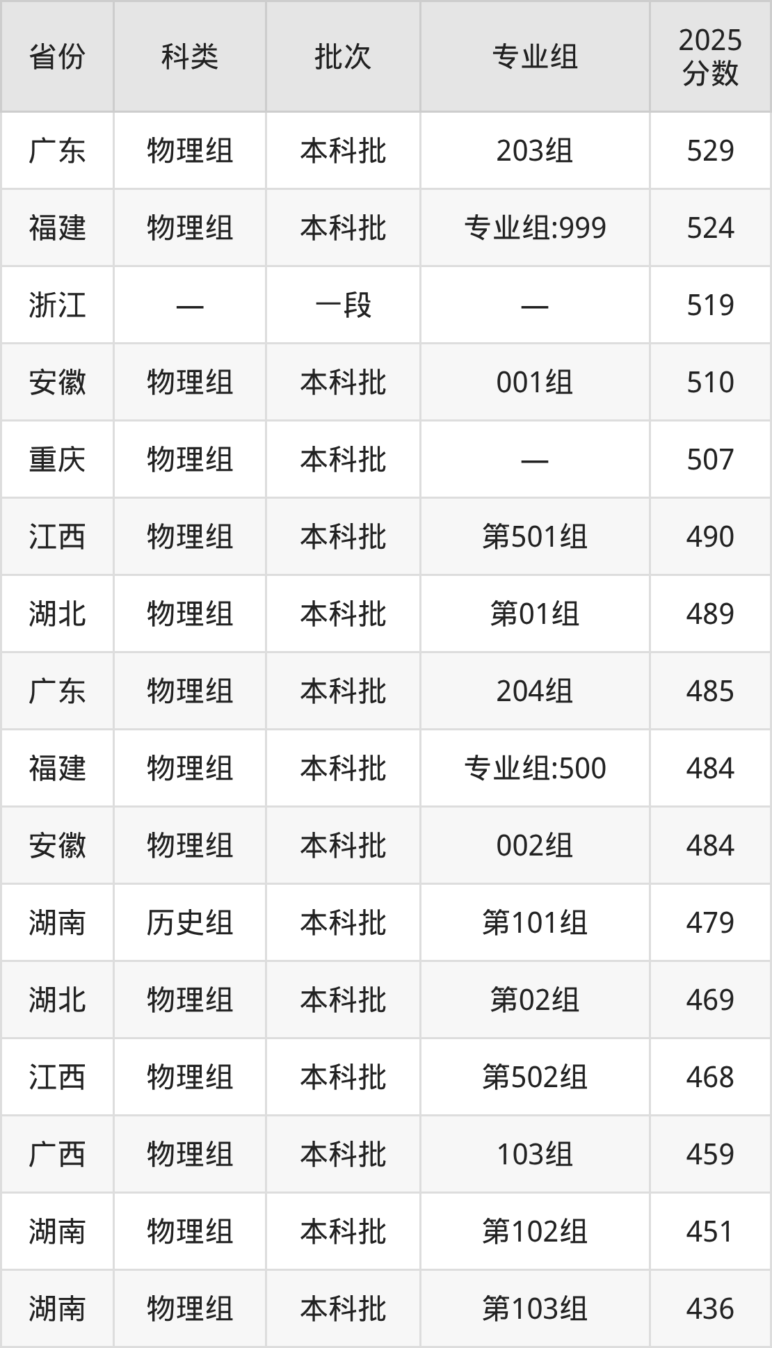 而广东地区物理组考生的分数门槛最高,2025年湖南中医药大学湘杏学院203组在广东招生最低分为529分,考生至少要超本科线93分才有可能被录取。