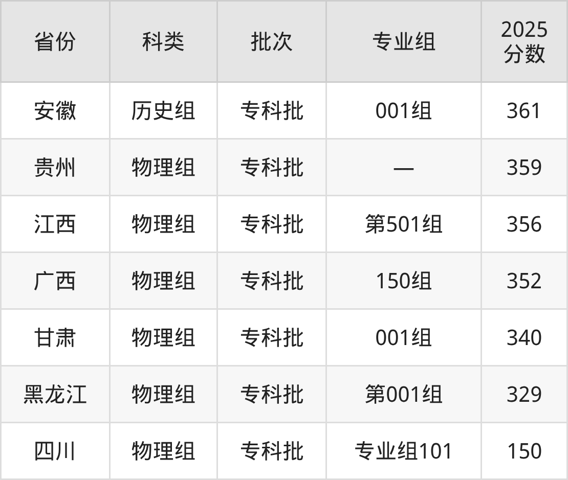 海南卫生健康职业学院在省外招生最低录取分数线为150分,不同地区、不同科类的考生最低分有差异。