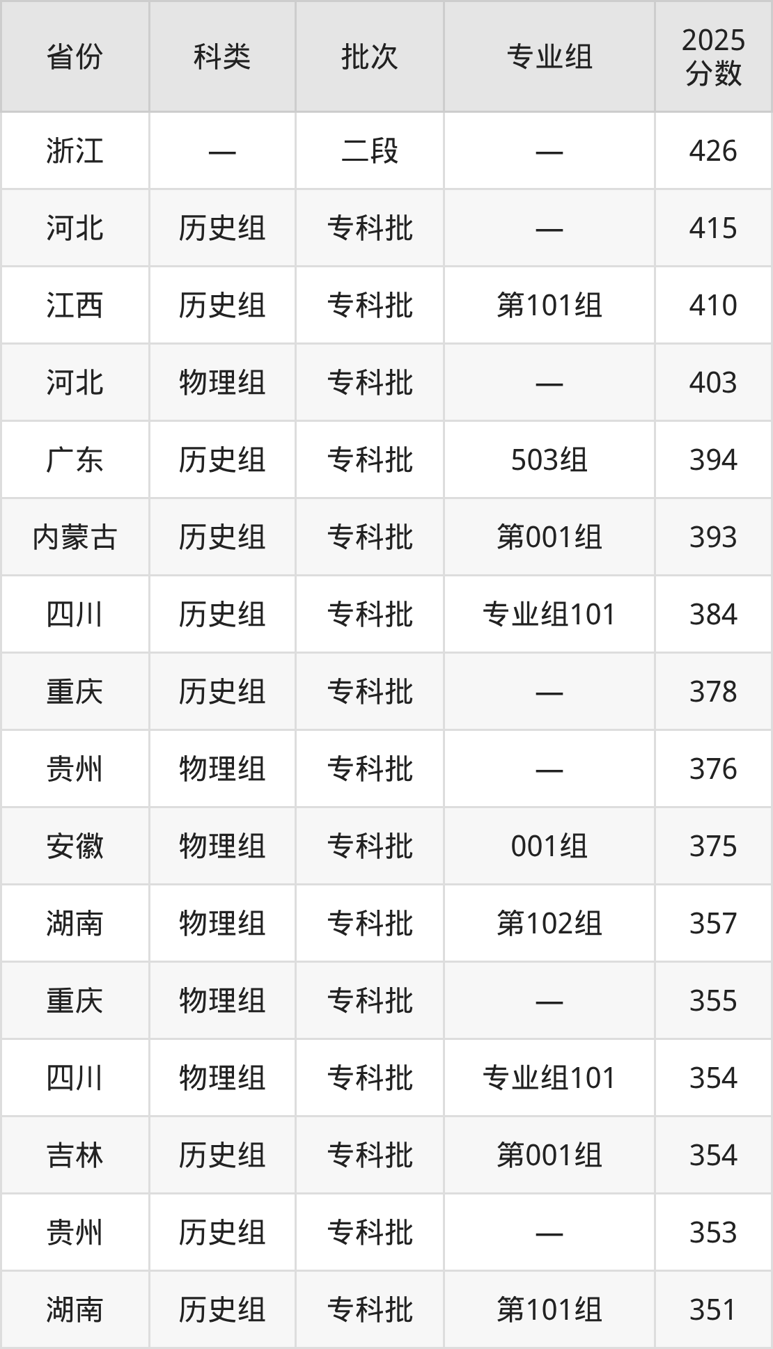 而浙江地区考生的分数门槛最高,2025年青岛酒店管理职业技术学院在浙江招生最低分为426分,考生至少要超二段线158分才有可能被录取。
