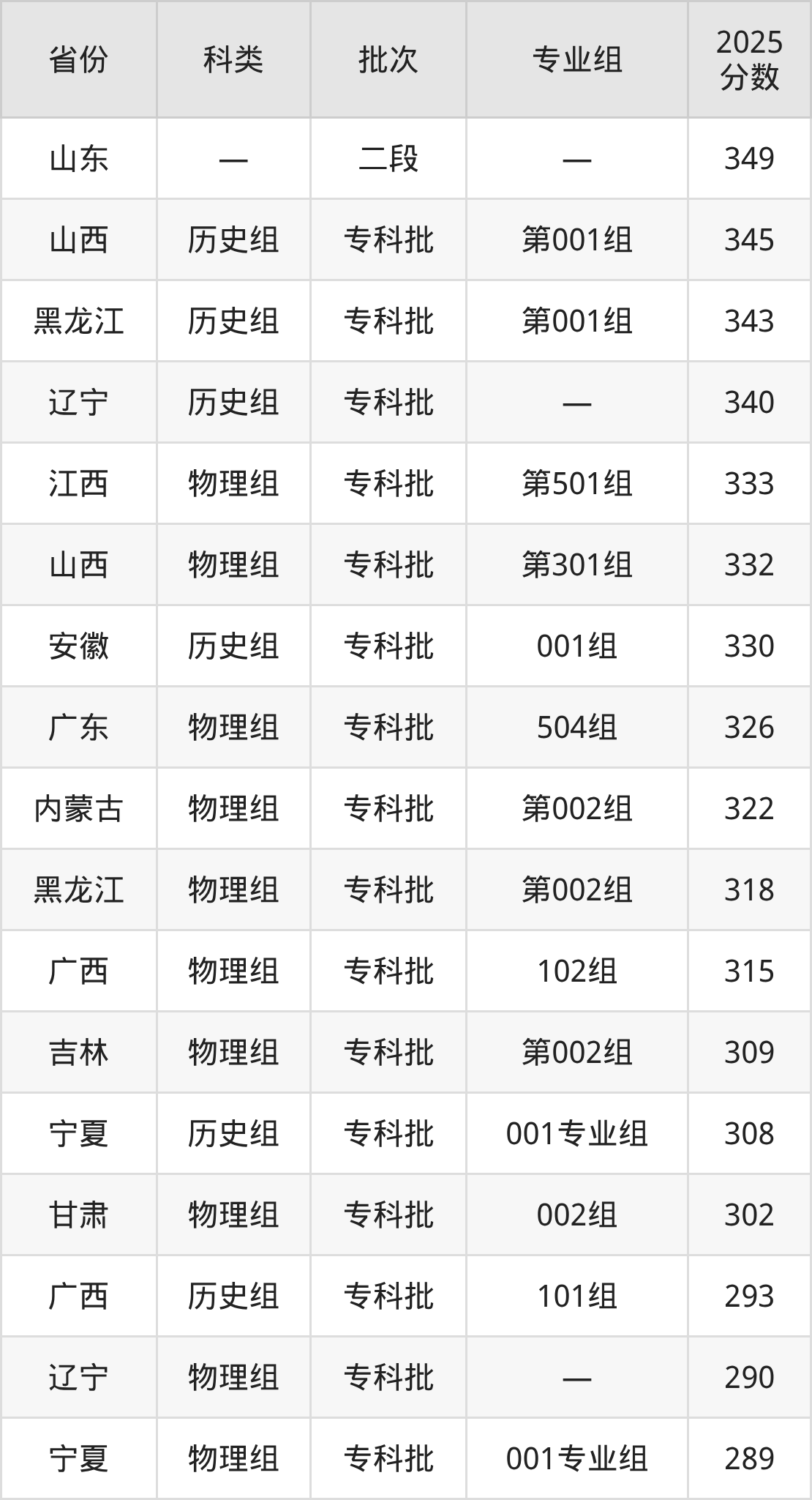 下面是青岛酒店管理职业技术学院2025年在全国各省的录取分数线一览表,供参考: