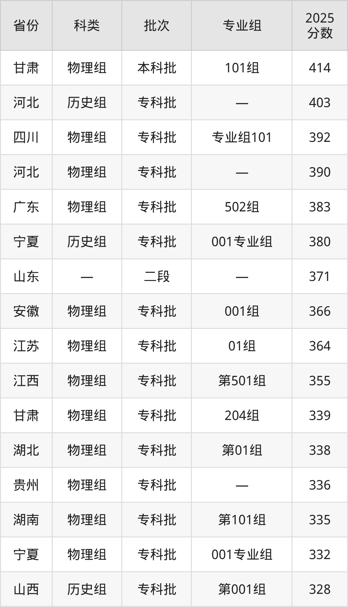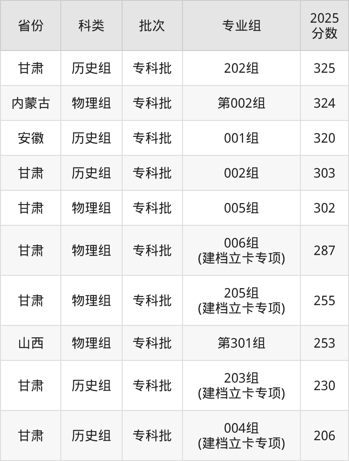 而河北地区历史组考生的分数门槛最高,2025年甘肃工业职业技术大学在河北招生最低分为403分,考生至少要超专科线203分才有可能被录取。