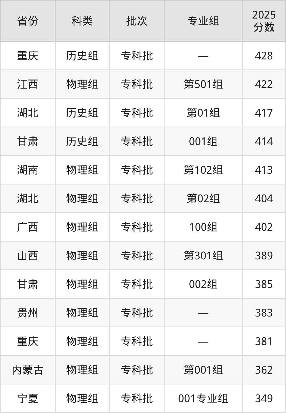 下面是四川交通职业技术学院2025年在全国各省的录取分数线一览表,供参考: