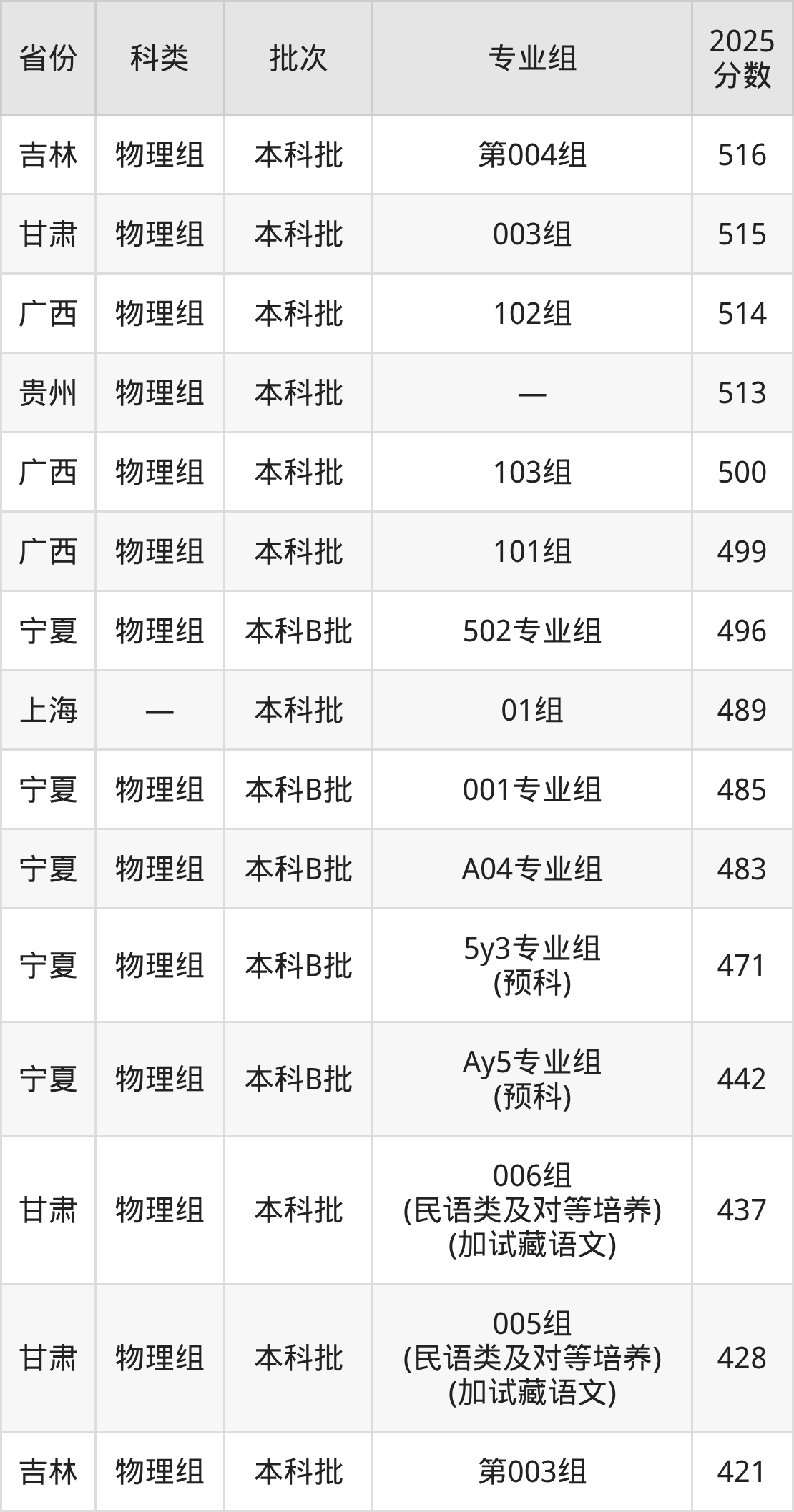 青海大学2026年录取分数需在高招结束官方数据公布后更新,2026届有意向报考该校的同学,可以在填报志愿时参考青海大学2025年录取分数线:
