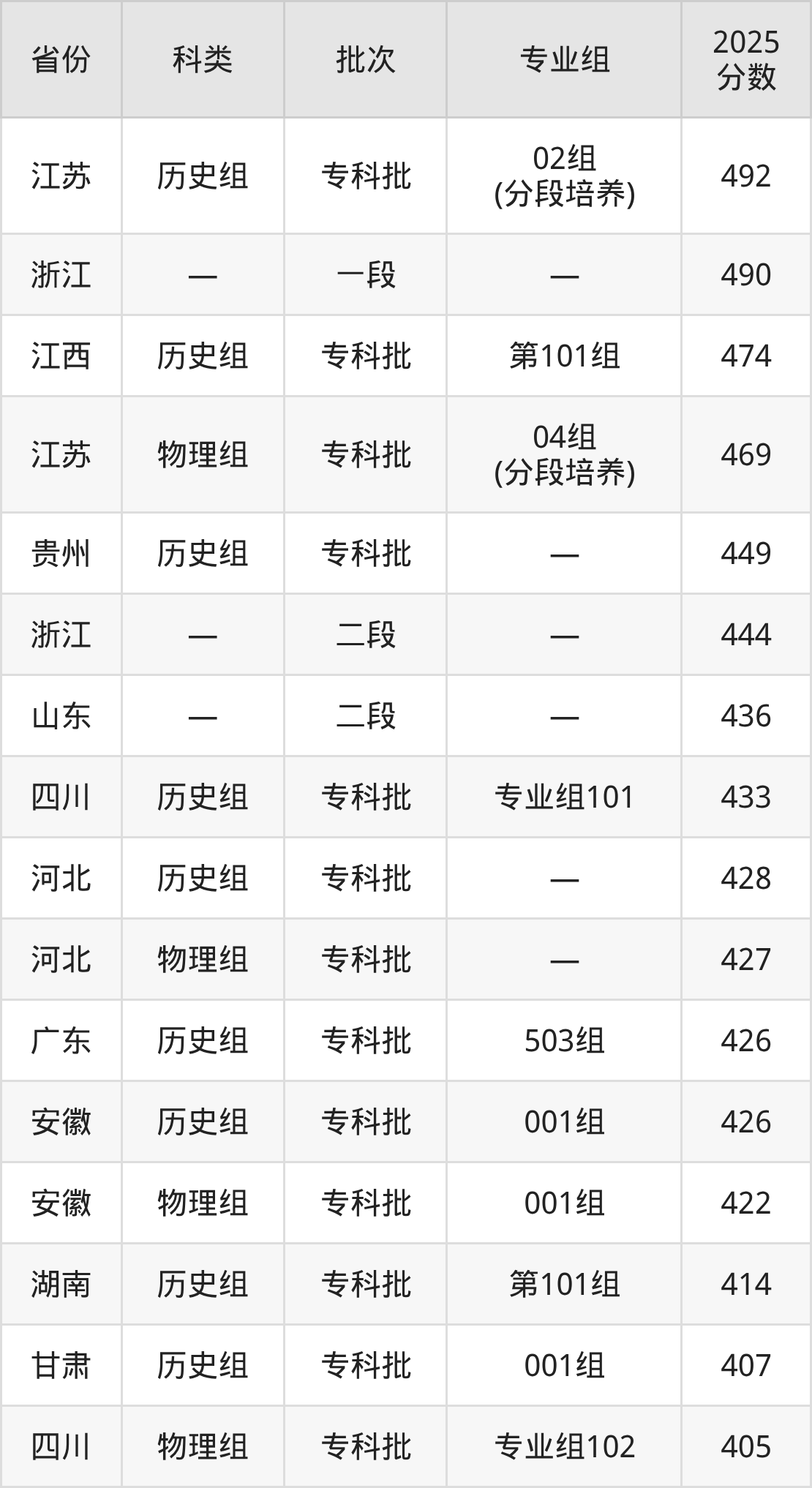 而浙江地区考生的分数门槛最高,2025年江苏财经职业技术学院在浙江招生最低分为490分,考生至少要超一段线0分才有可能被录取。