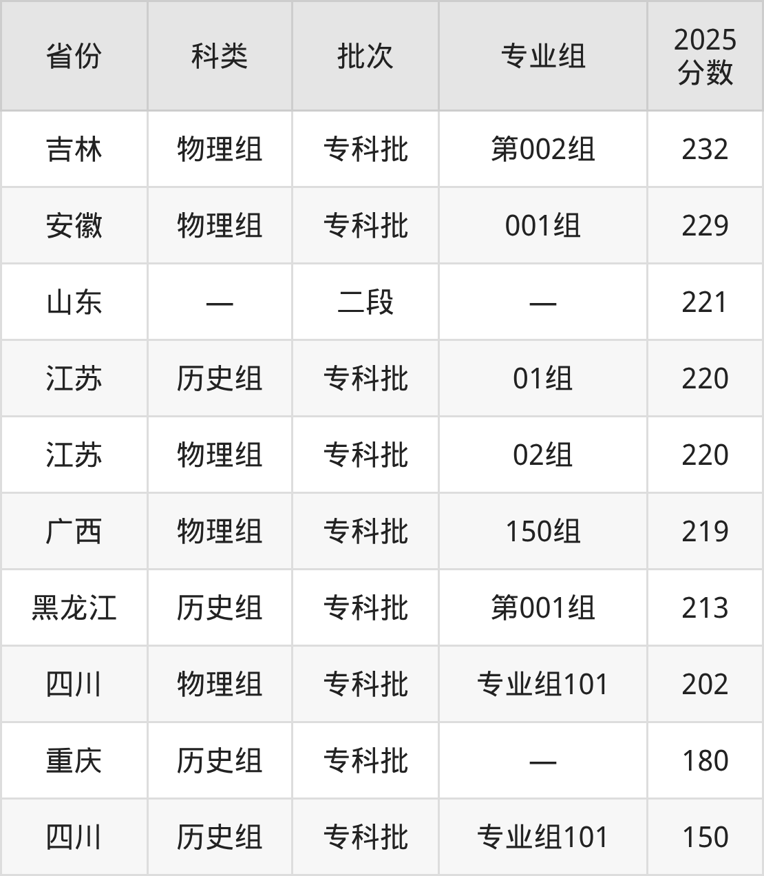 泉州轻工职业学院在省外招生最低录取分数线为150分,不同地区、不同科类的考生最低分有差异。