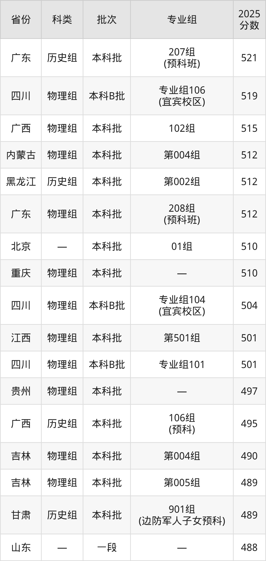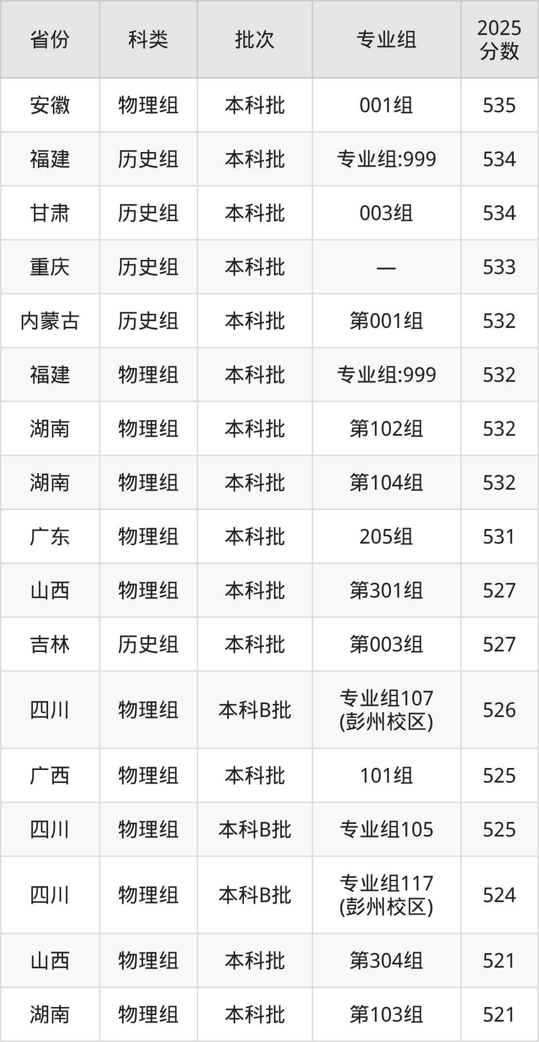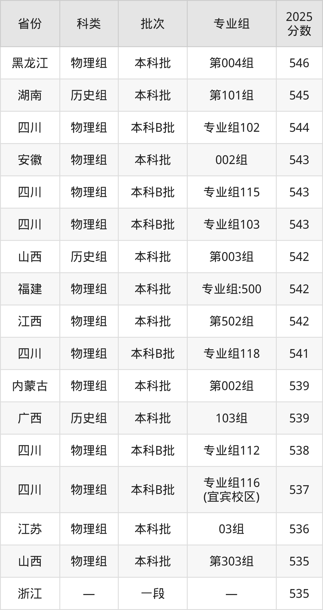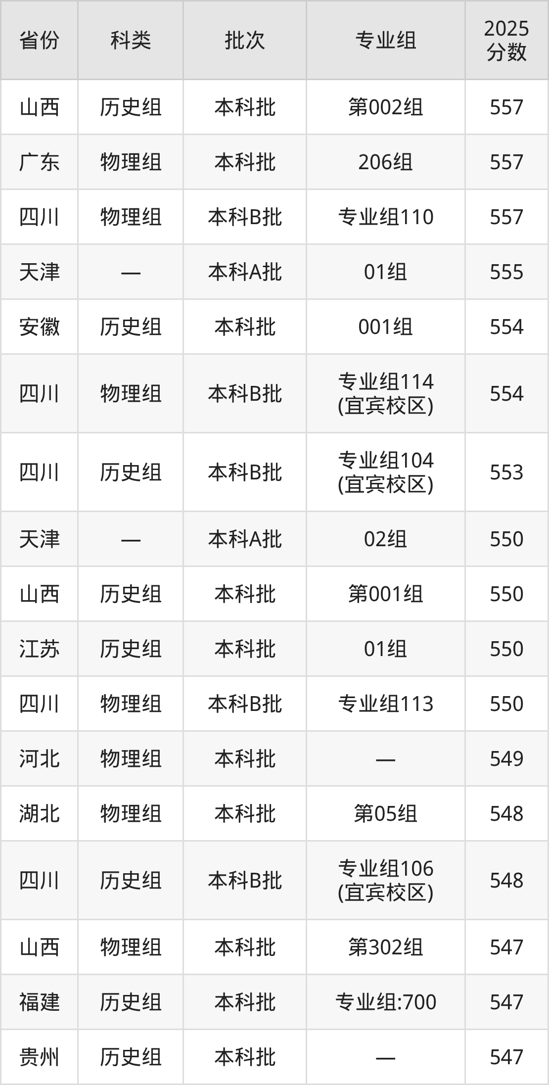 下面是西华大学2025年在全国各省的录取分数线一览表,供参考: