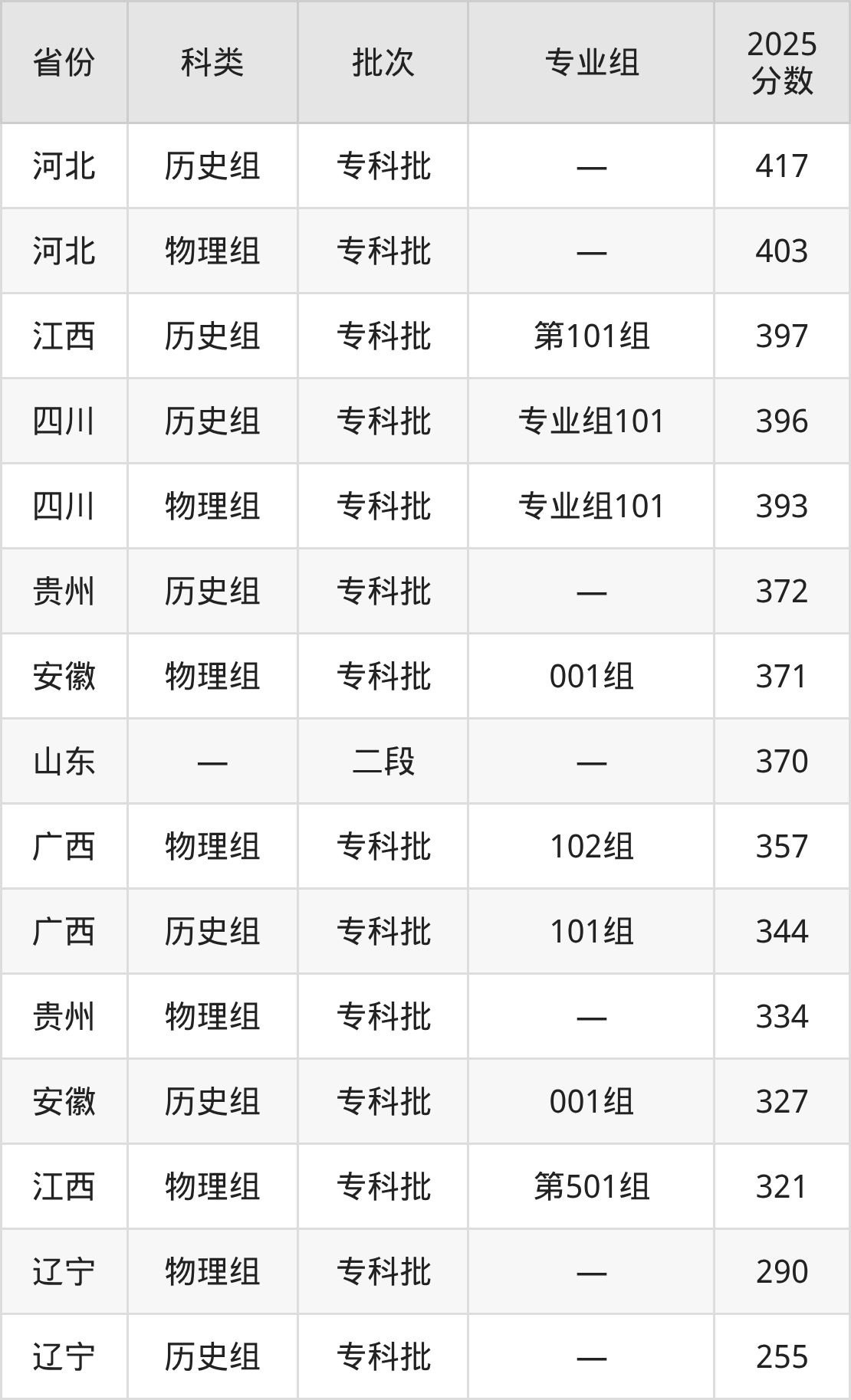 而河北地区历史组考生的分数门槛最高,2025年云南能源职业技术学院在河北招生最低分为417分,考生至少要超专科线217分才有可能被录取。