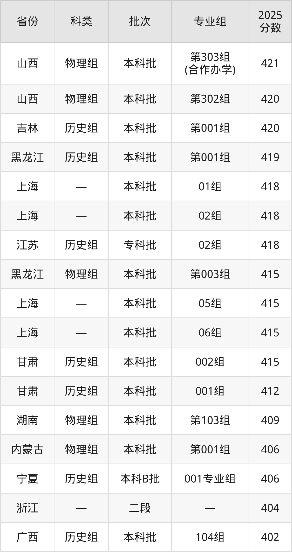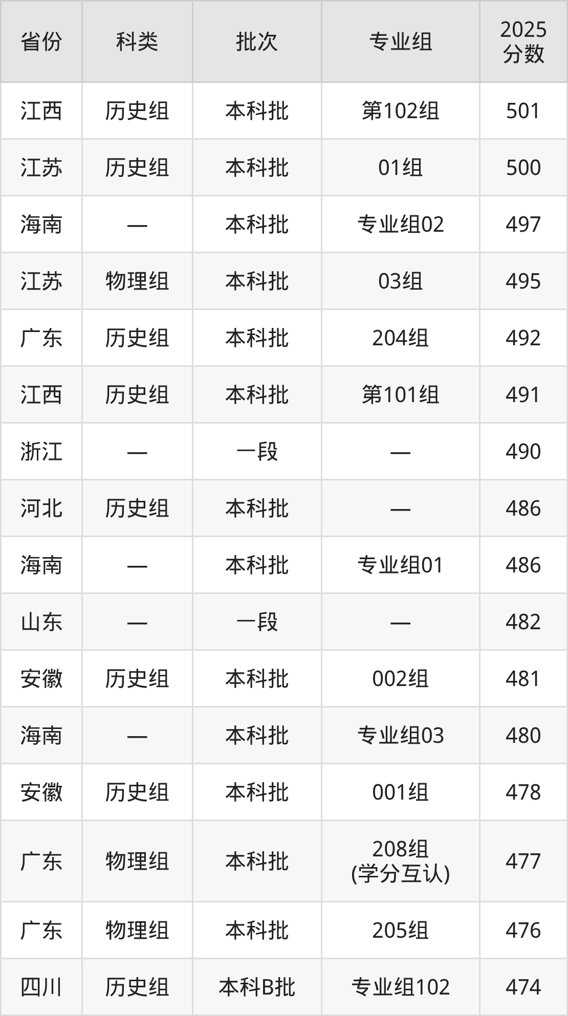 而江西地区历史组考生的分数门槛最高,2025年上海建桥学院第102组在江西招生最低分为501分,考生至少要超本科线15分才有可能被录取。