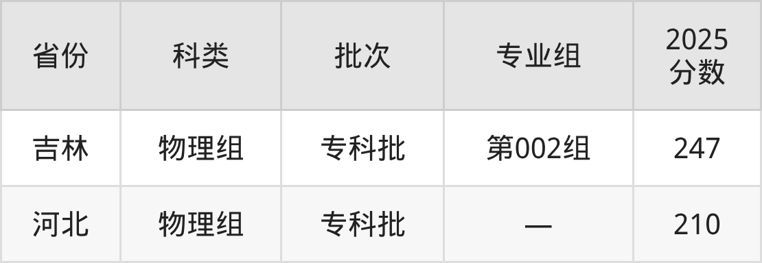 下面是张家口职业技术学院2025年在全国各省的录取分数线一览表,供参考: