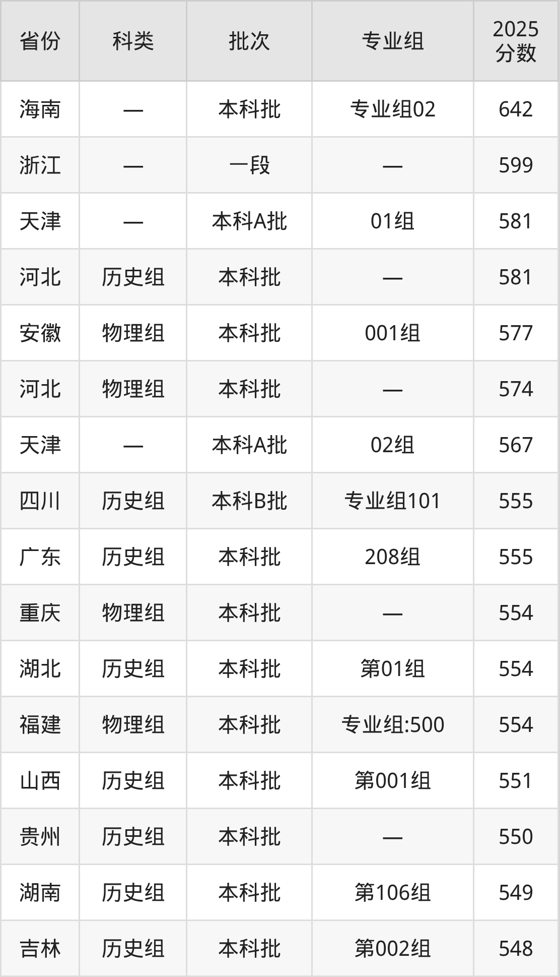而海南地区考生的分数门槛最高,2025年南京艺术学院专业组02在海南招生最低分为642分,考生至少要超本科线162分才有可能被录取。