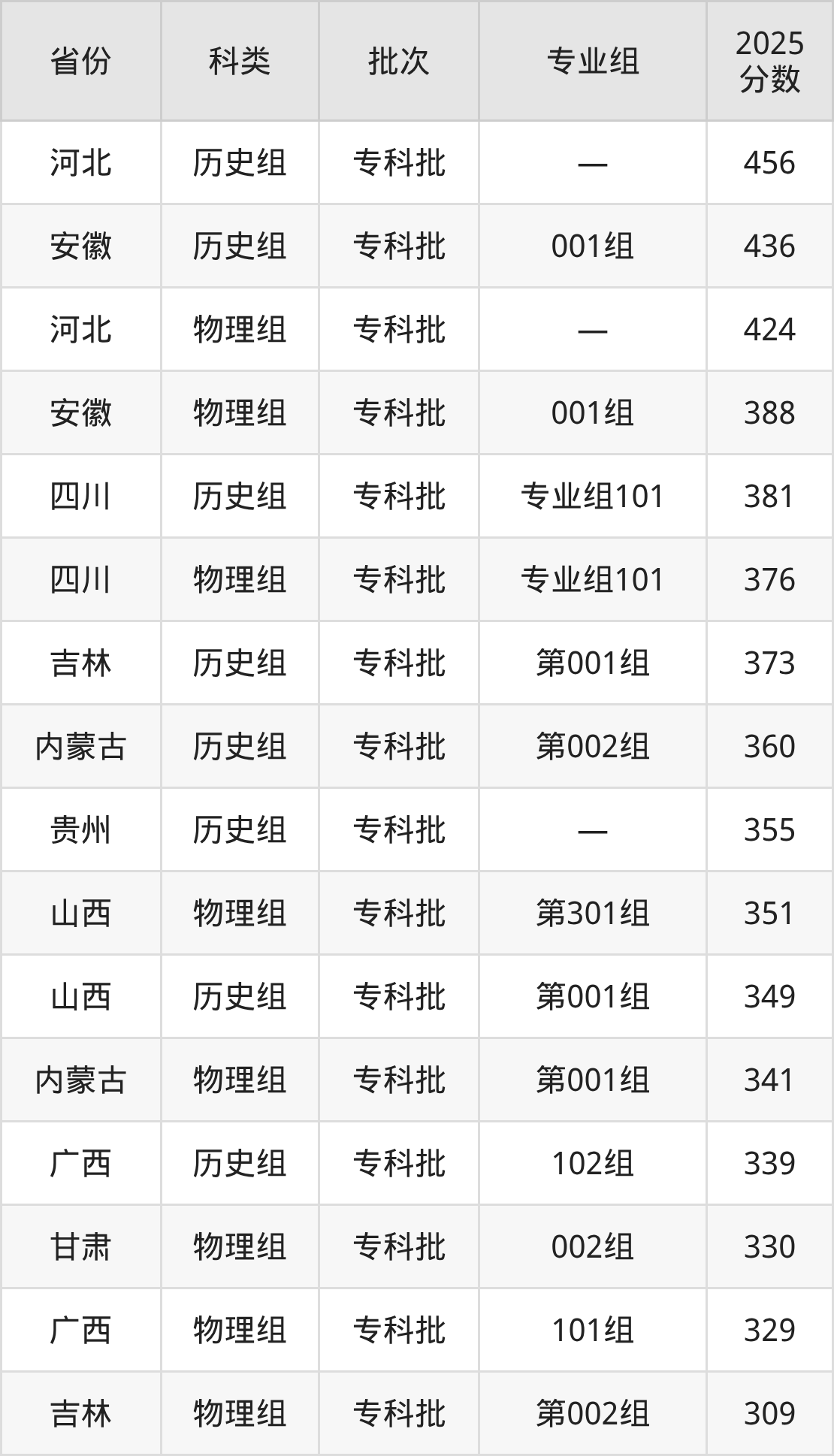 下面是莱芜职业技术学院2025年在全国各省的录取分数线一览表,供参考: