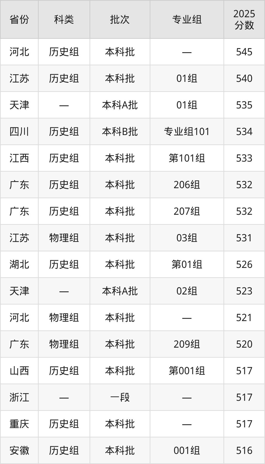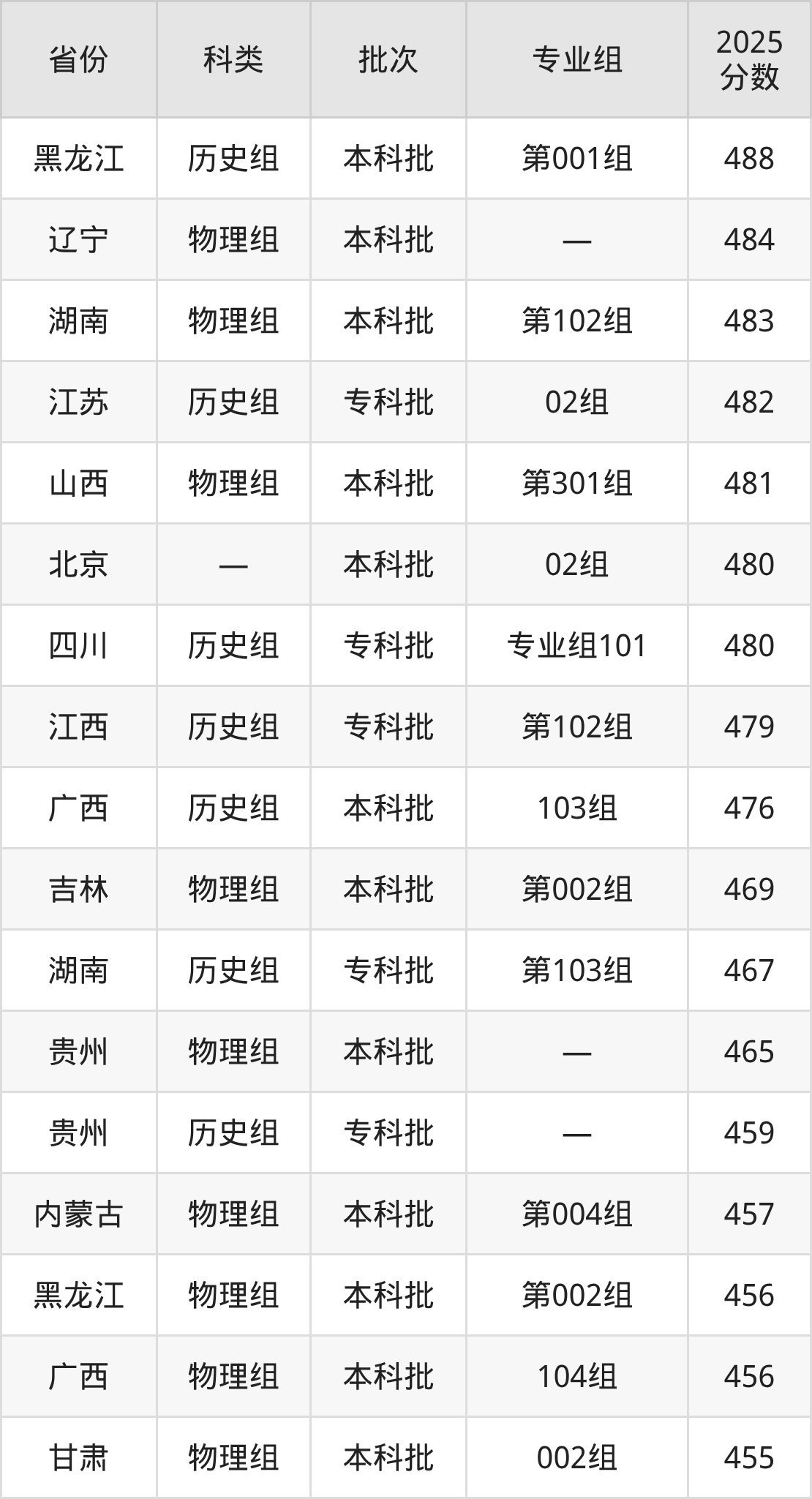 而河北地区历史组考生的分数门槛最高,2025年民政职业大学在河北招生最低分为545分,考生至少要超本科线68分才有可能被录取。