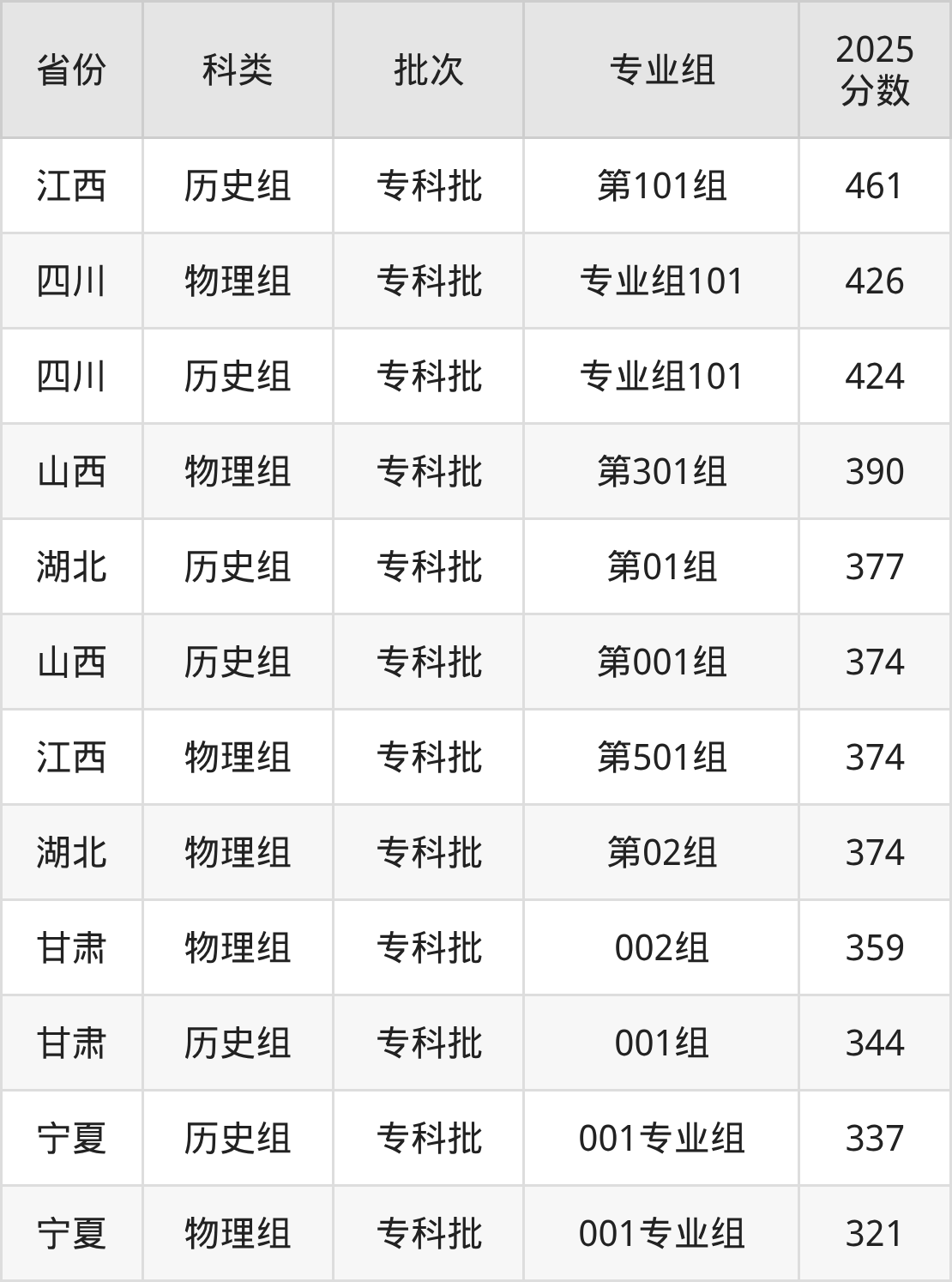 而江西地区历史组考生的分数门槛最高,2025年陕西农林职业技术大学第101组在江西招生最低分为461分,考生至少要超专科线171分才有可能被录取。