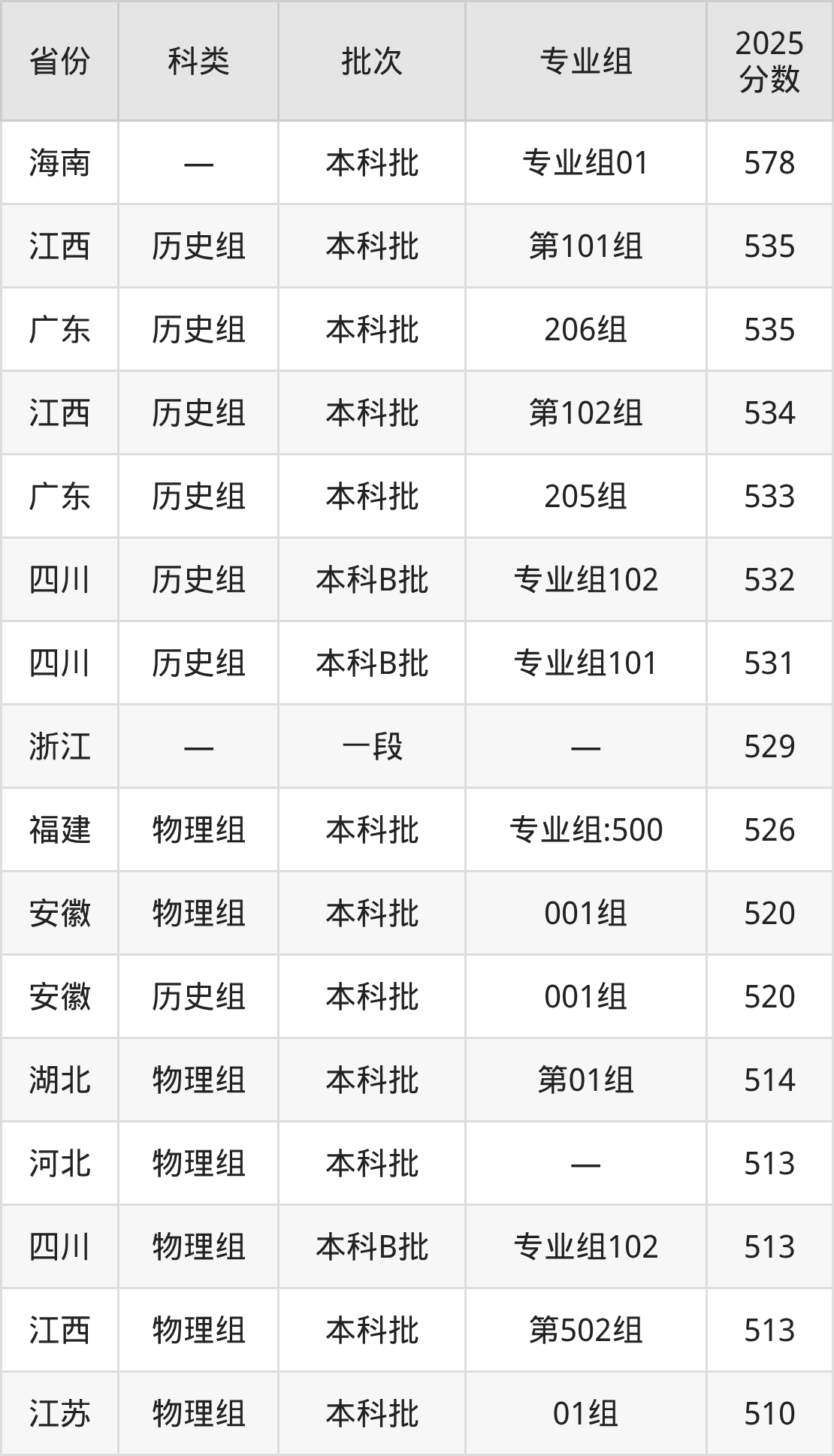 而海南地区考生的分数门槛最高,2025年衢州学院专业组01在海南招生最低分为578分,考生至少要超本科线98分才有可能被录取。