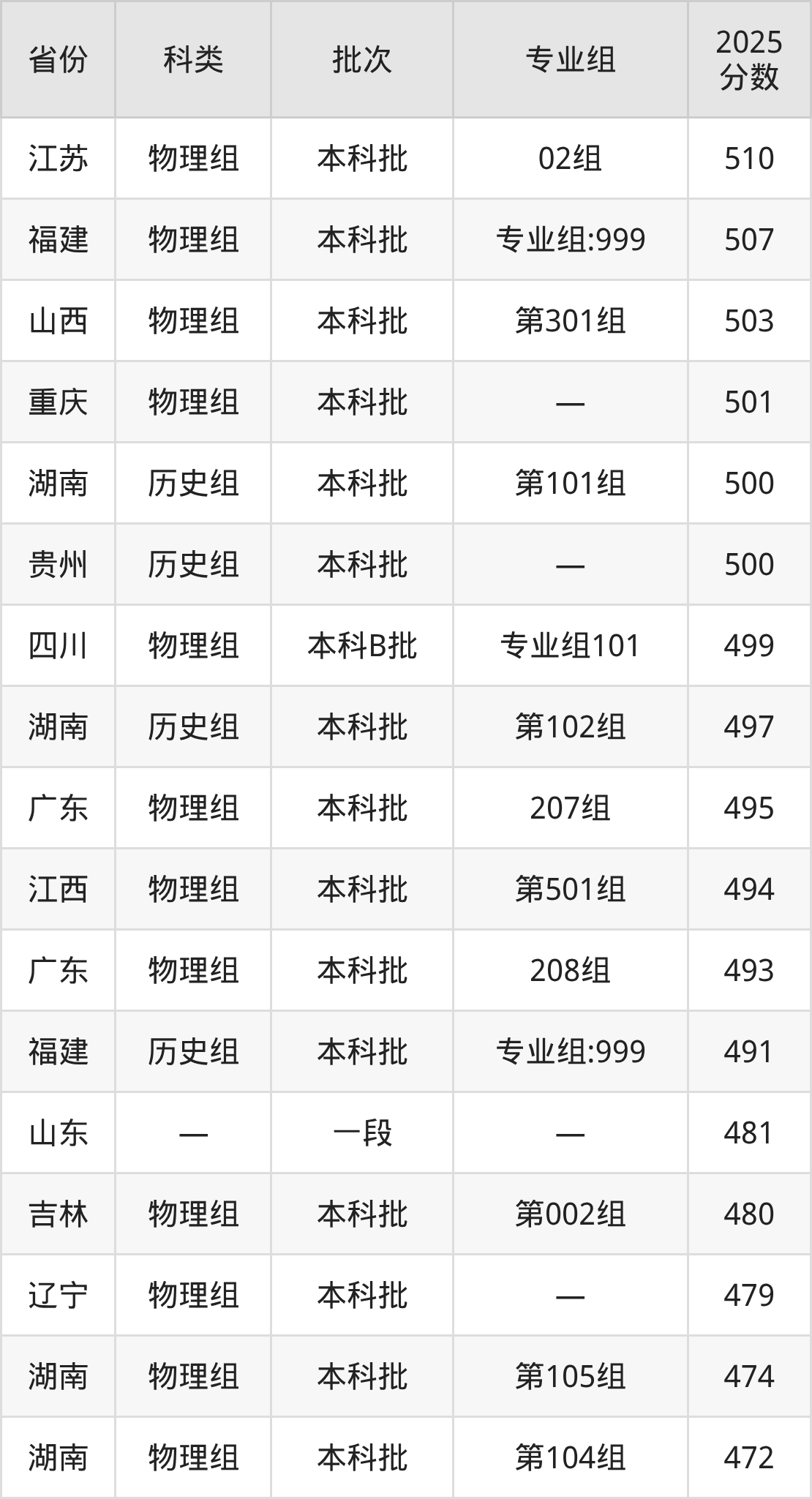 下面是衢州学院2025年在全国各省的录取分数线一览表,供参考: