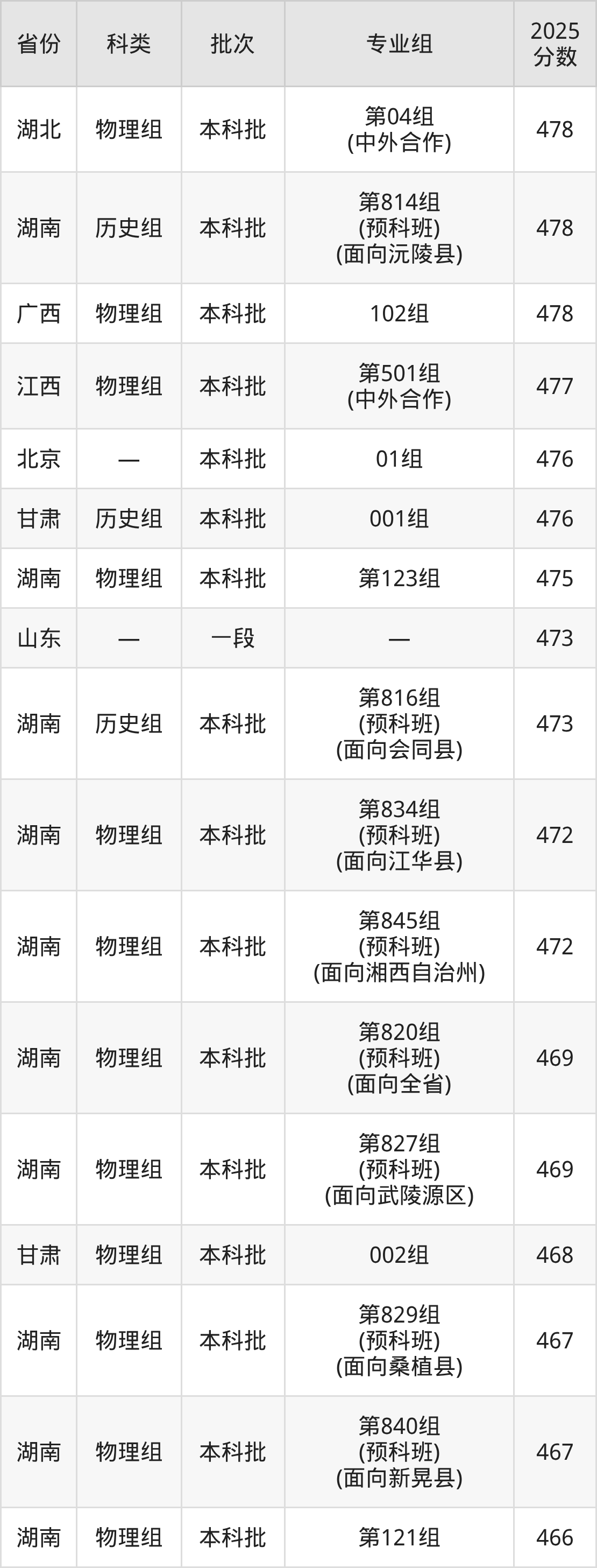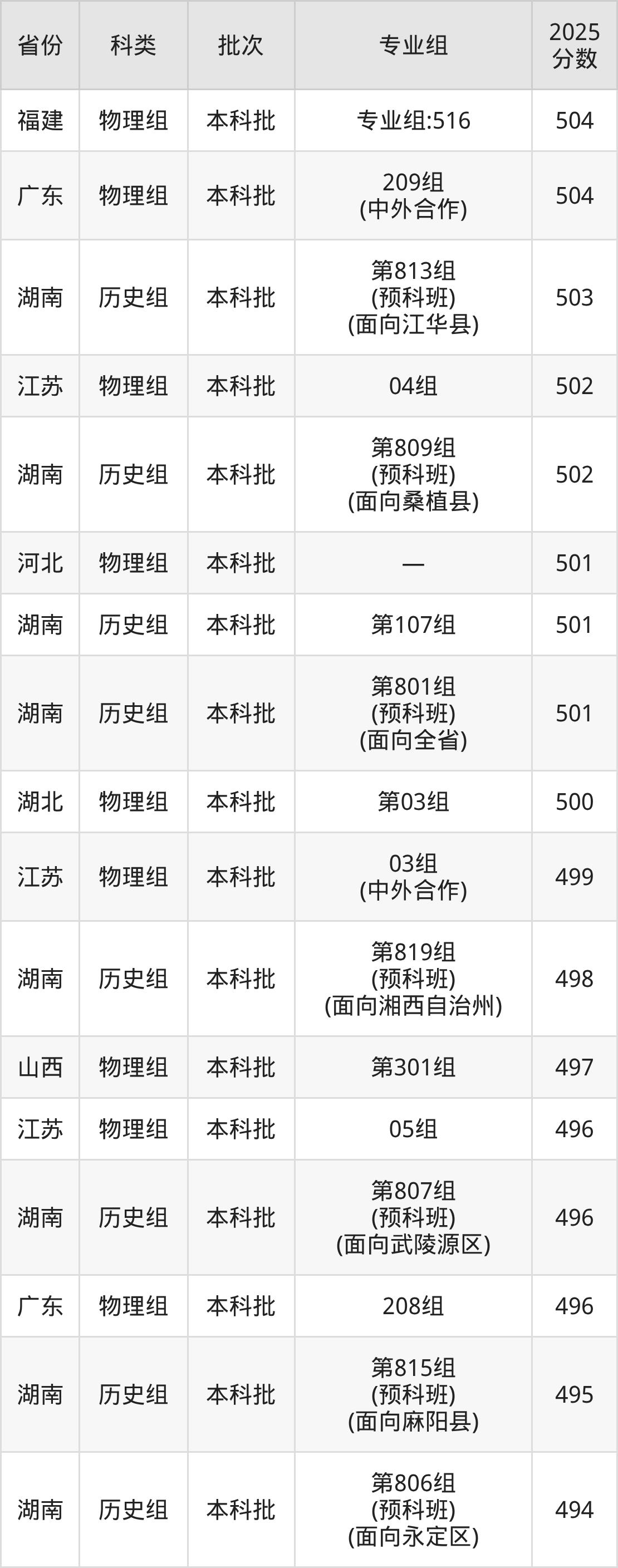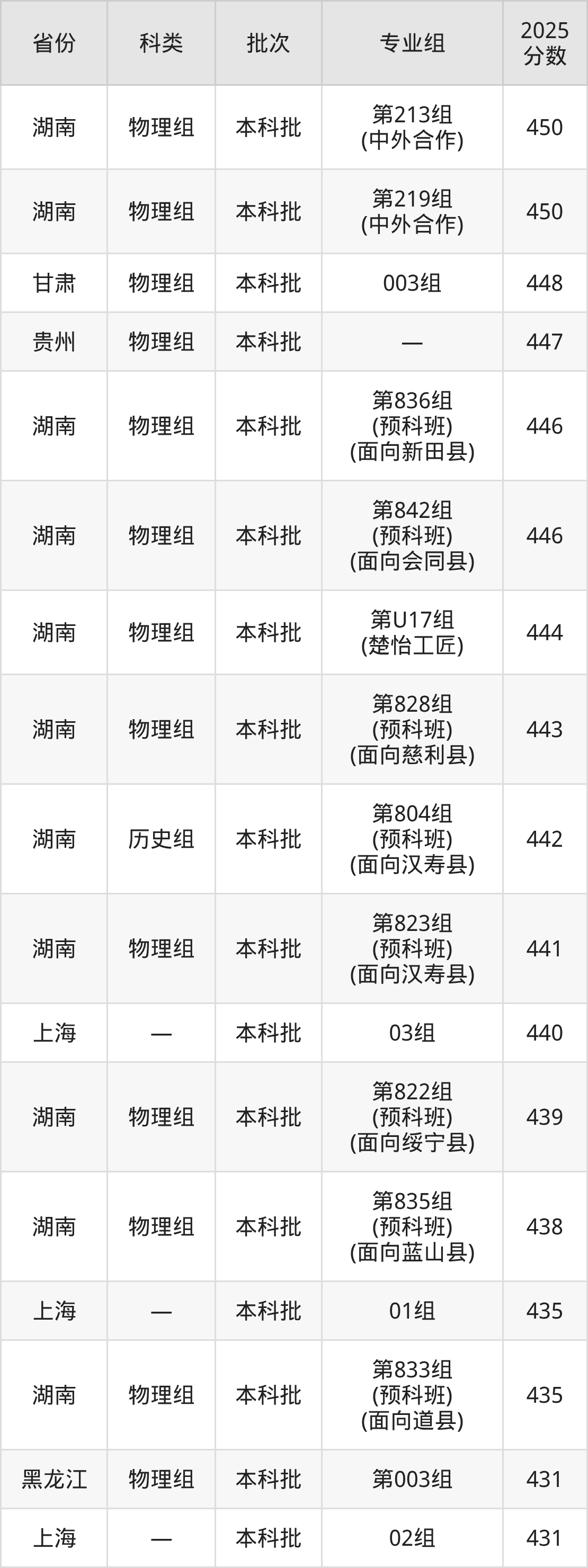 而海南地区考生的分数门槛最高,2025年湖南文理学院专业组04在海南招生最低分为595分,考生至少要超本科线115分才有可能被录取。