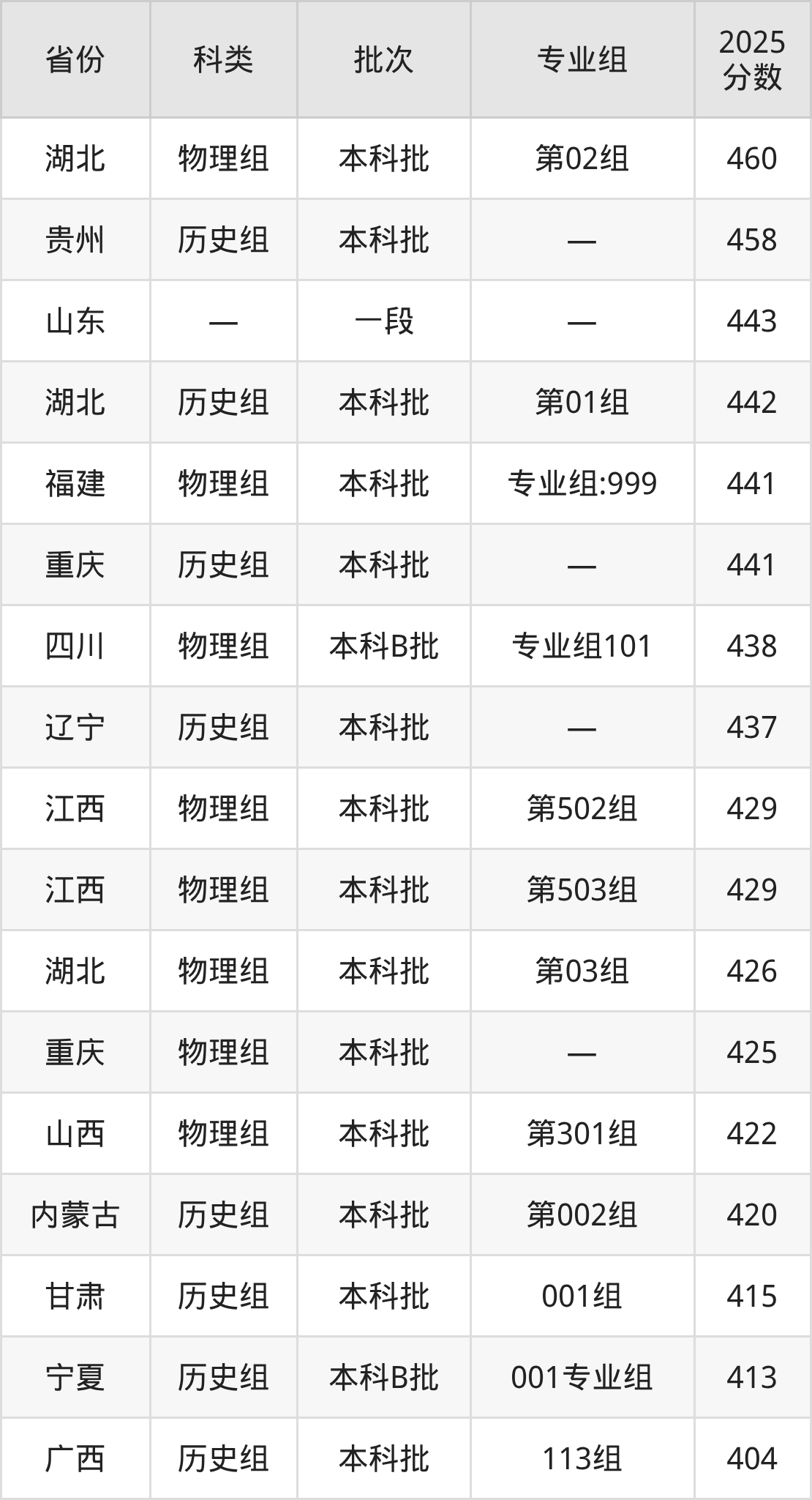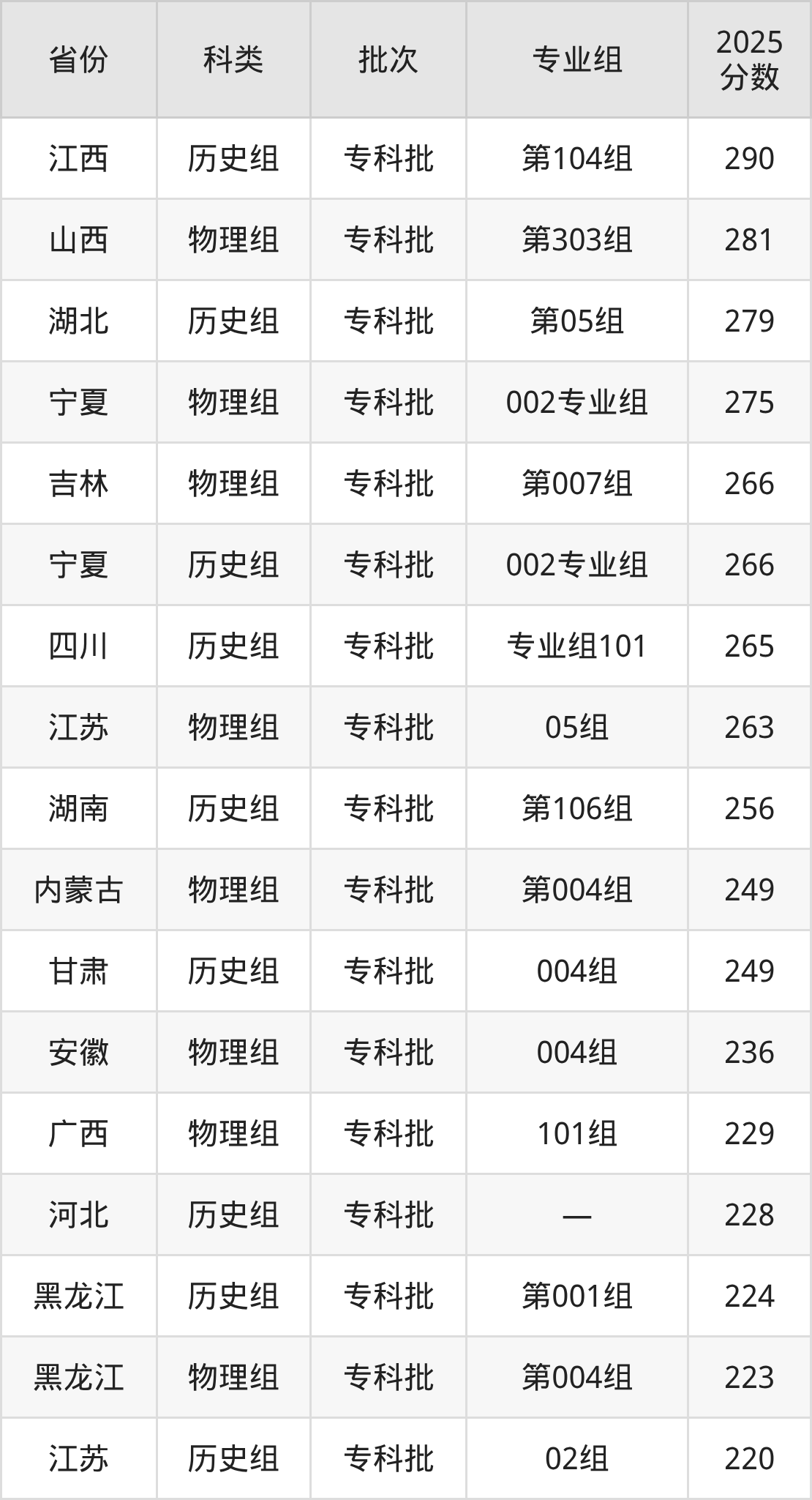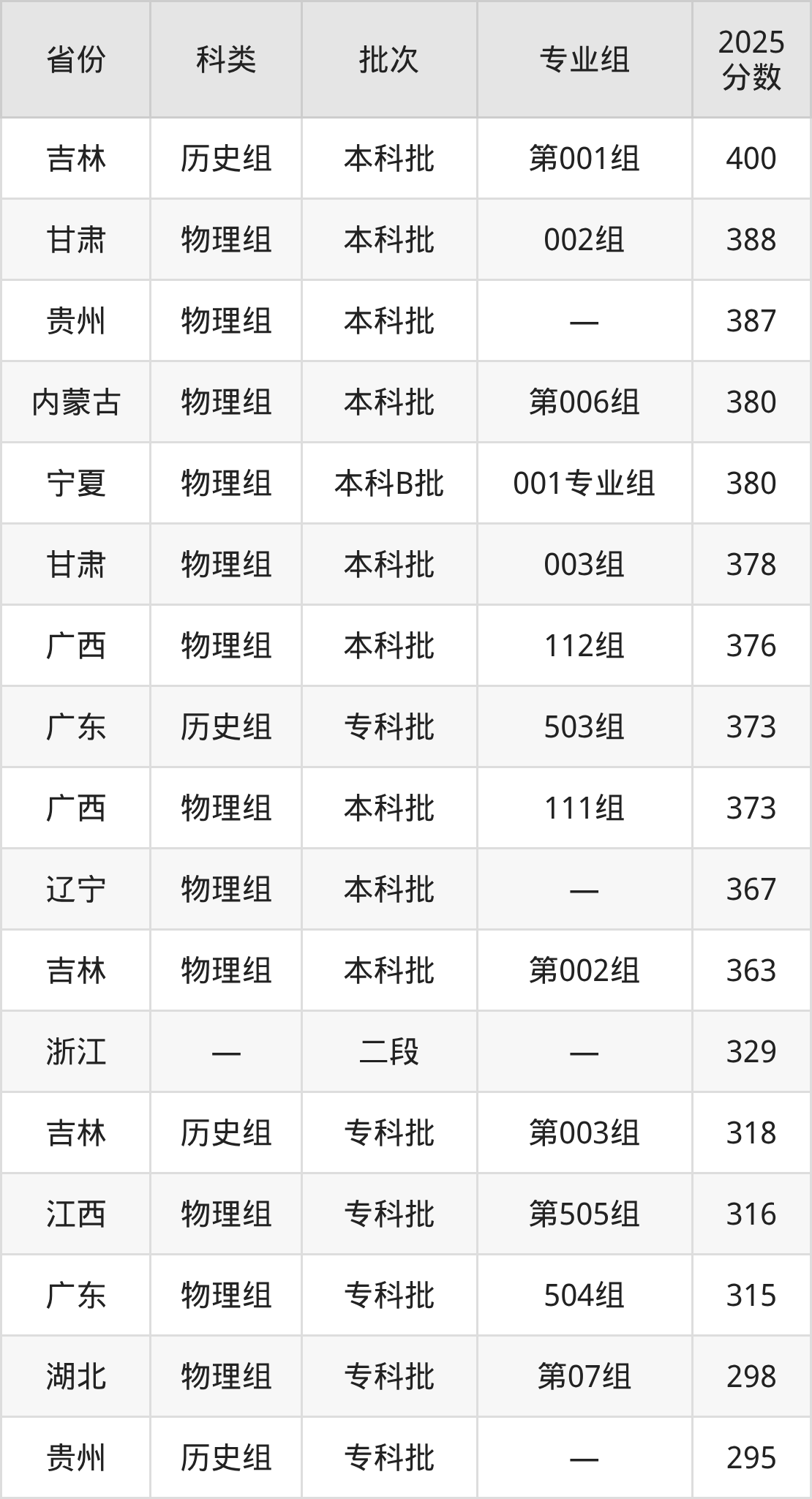 下面是海南科技职业大学2025年在全国各省的录取分数线一览表,供参考: