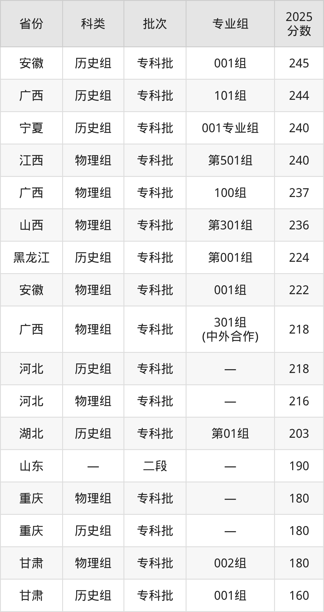 下面是江西工商职业技术学院2025年在全国各省的录取分数线一览表,供参考: