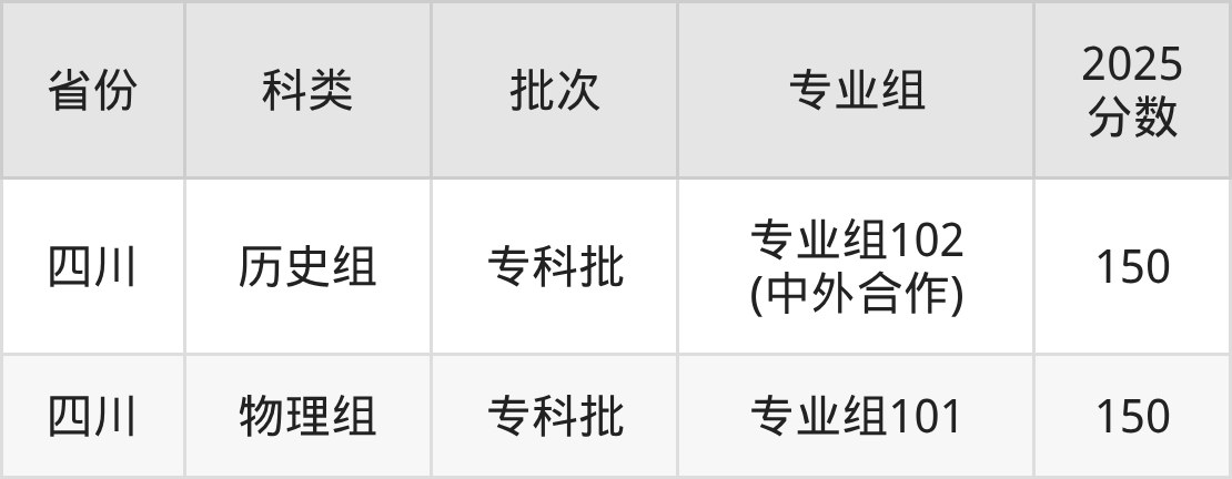江西工商职业技术学院在省外招生的最低分为150分,其中四川地区历史组考生上江西工商职业技术学院的分数门槛最低,考生成绩达专科线即可报考。其次是甘肃历史组考生,上江西工商职业技术学院至少要超专科线0分(160分)。