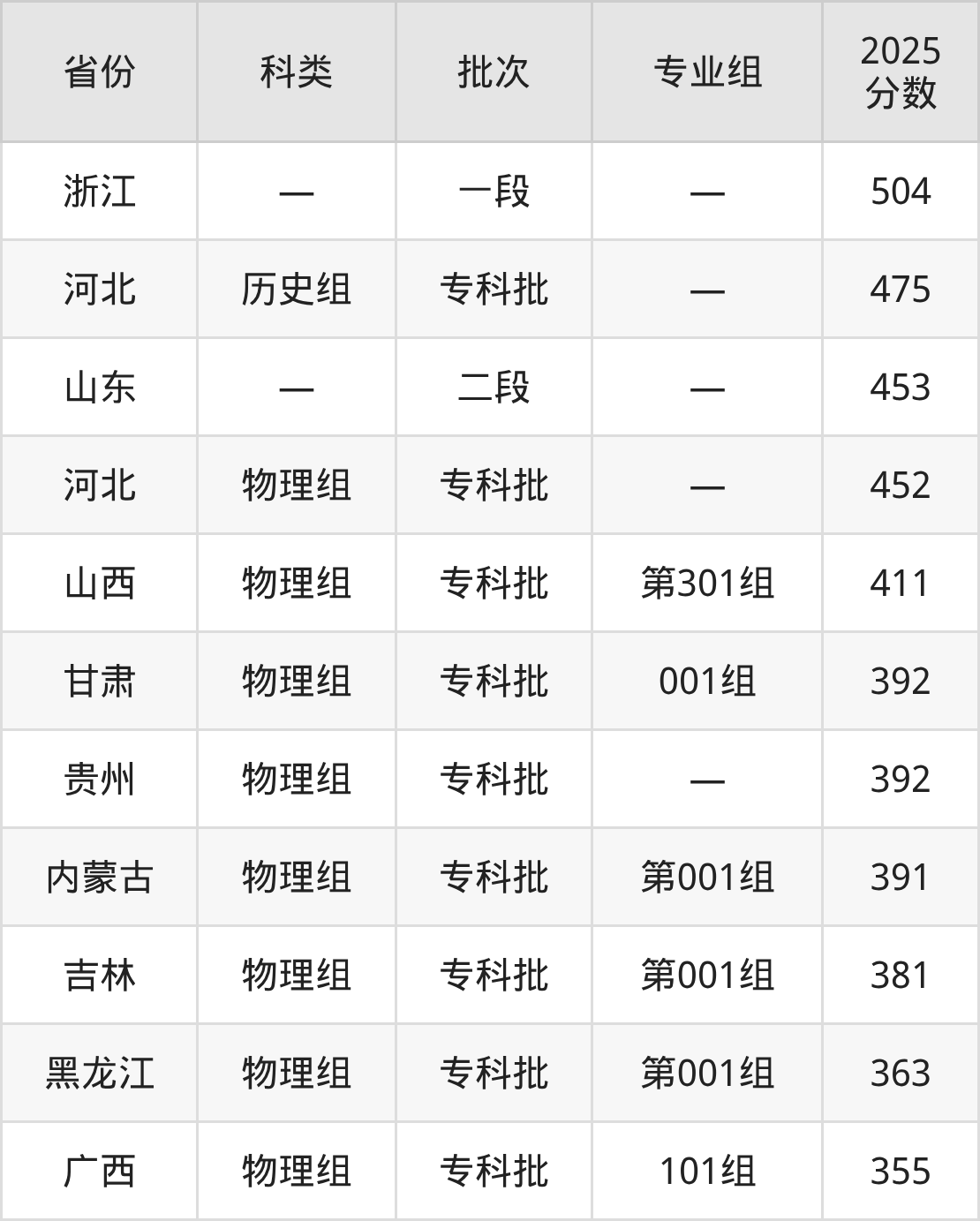 而浙江地区考生的分数门槛最高,2025年保定电力职业技术学院在浙江招生最低分为504分,考生至少要超一段线14分才有可能被录取。